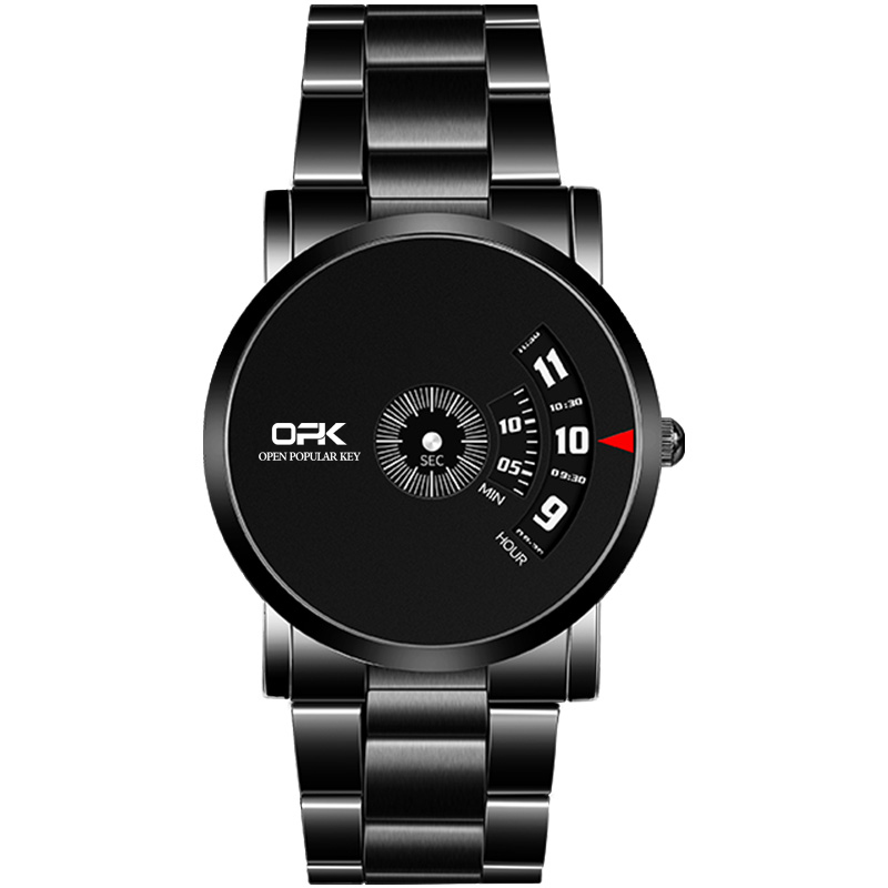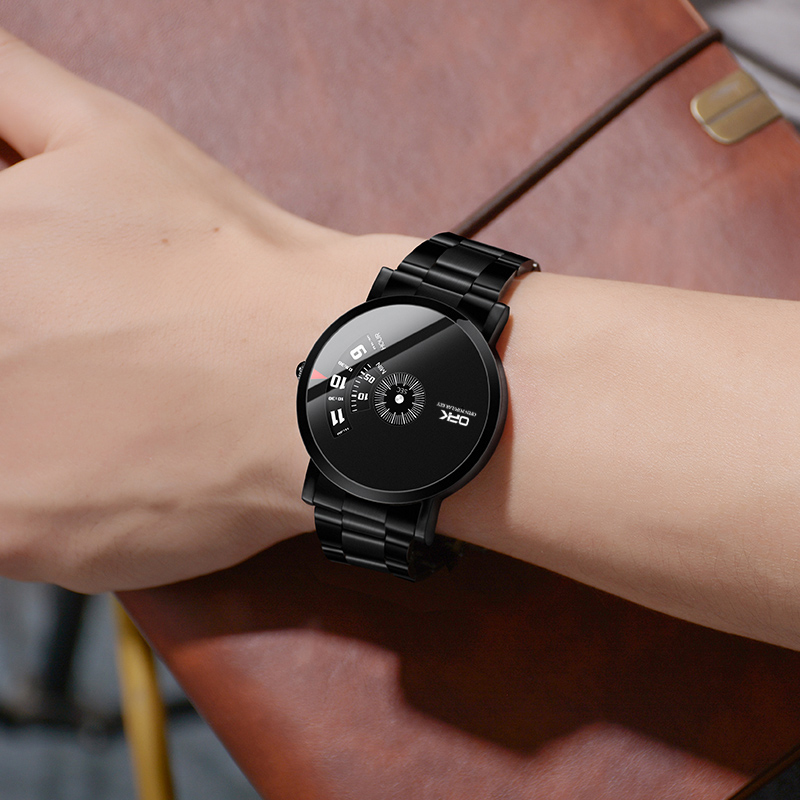 OPK Waterproof Watch For Men Original With Box Quartz Relo Business Stainless Steel Strap Black 8109