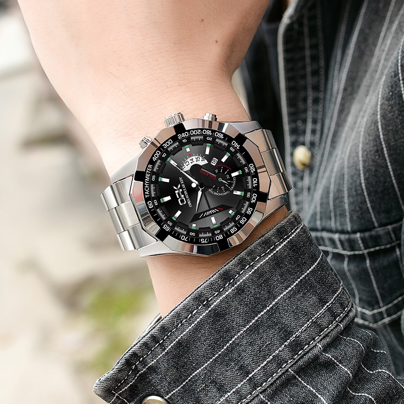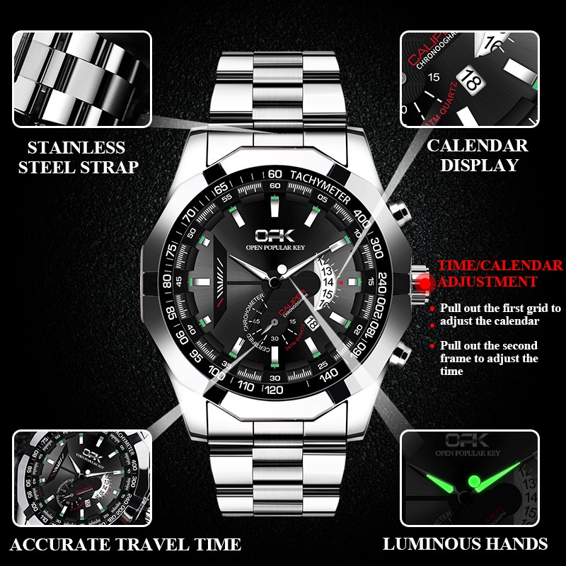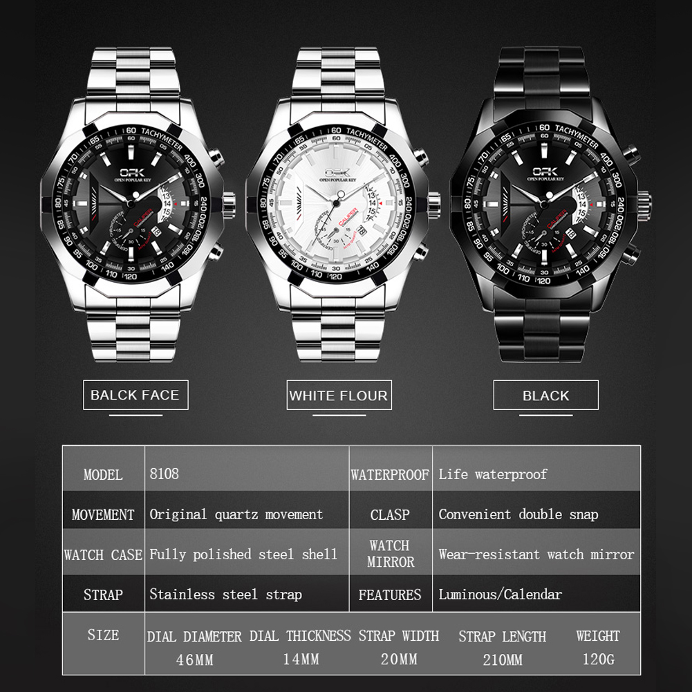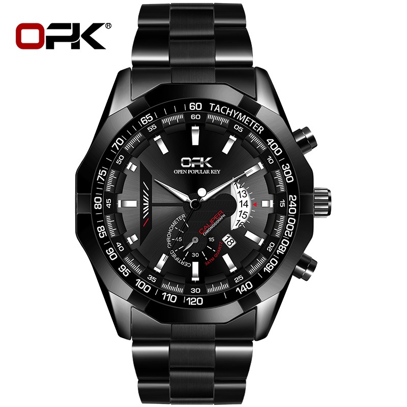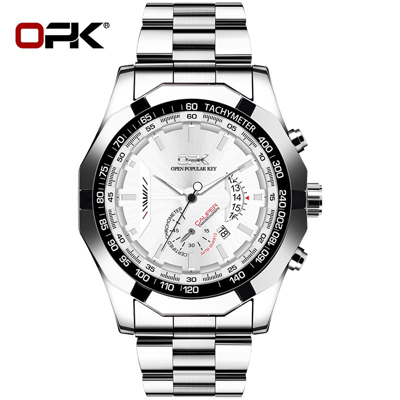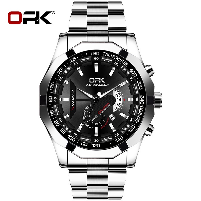 OPK Wrist Watch for Men With Box Water proof Original Quartz Calendar Stainless Steel Strap 8108