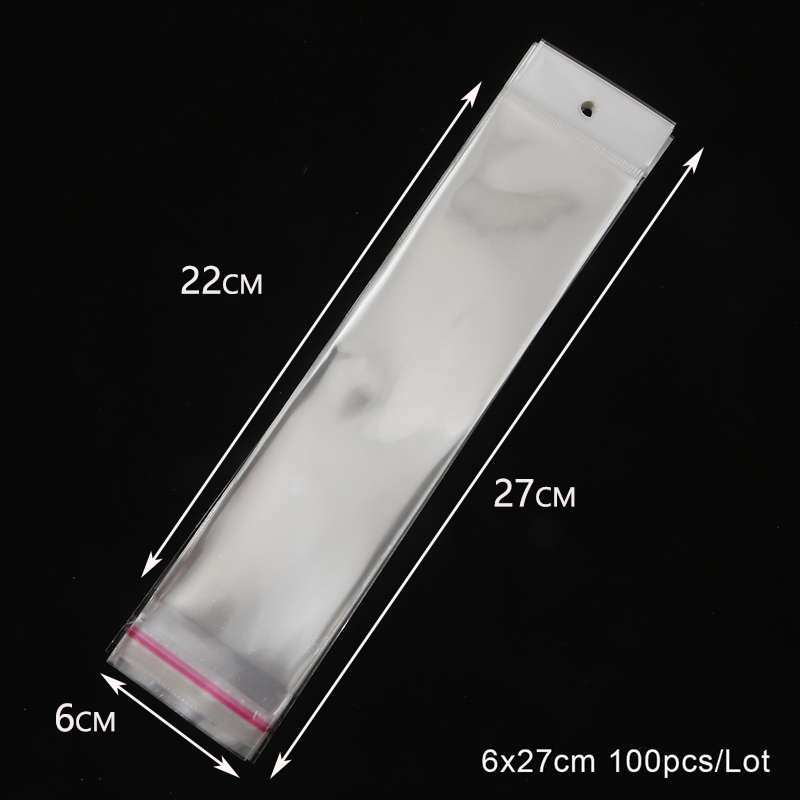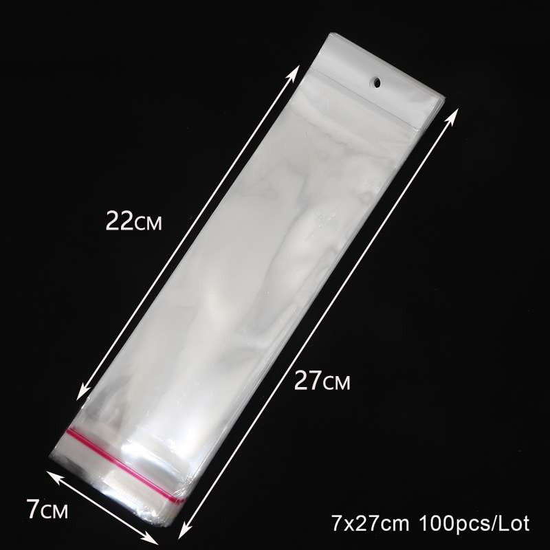 OPP Packing Bags 100Pcs/lot Transparent Self Adhesive Seal Plastic Storage Bag OPP Pack Bag With Hang Hole Retail Packaging Pouch
