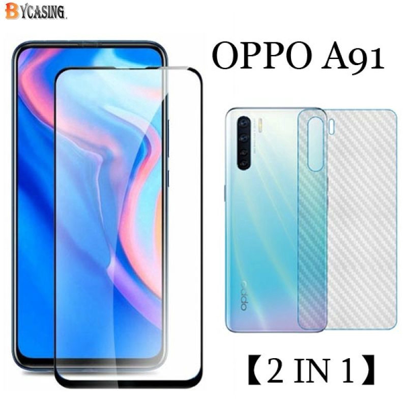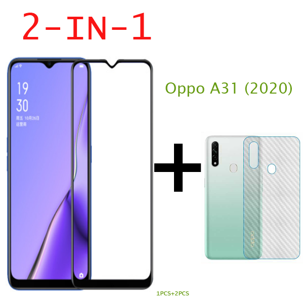 OPPO A31 A12 A91 A92 A5 2020 A5S A3S (2 in 1) Tempered Glass Screen Protector + 3D Carbon Fiber Back Protective Film