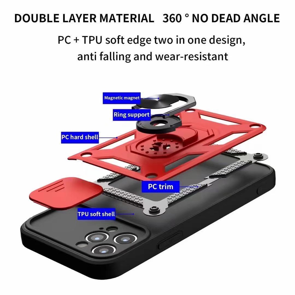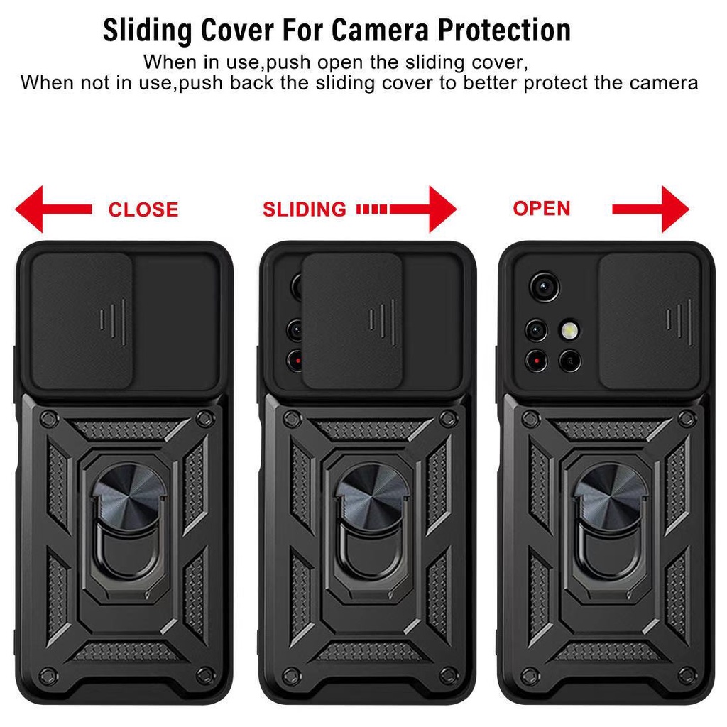 OPPO A5 A9 2020 A55(4G) A76 Slide Camera Armor Shockproof Case with Holder