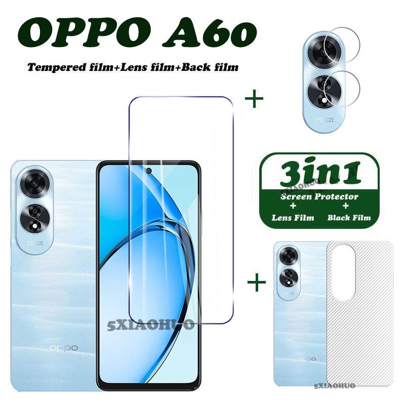 OPPO A60 Tempered Glass OPPO A60 Screen Protector OPPO A60 Camera Lens Protector Full Cover Screen Matte Privacy Glass 3In1 Carbon fiber back film