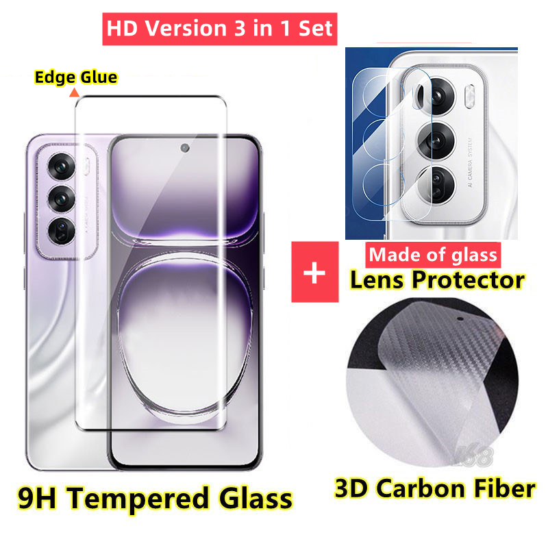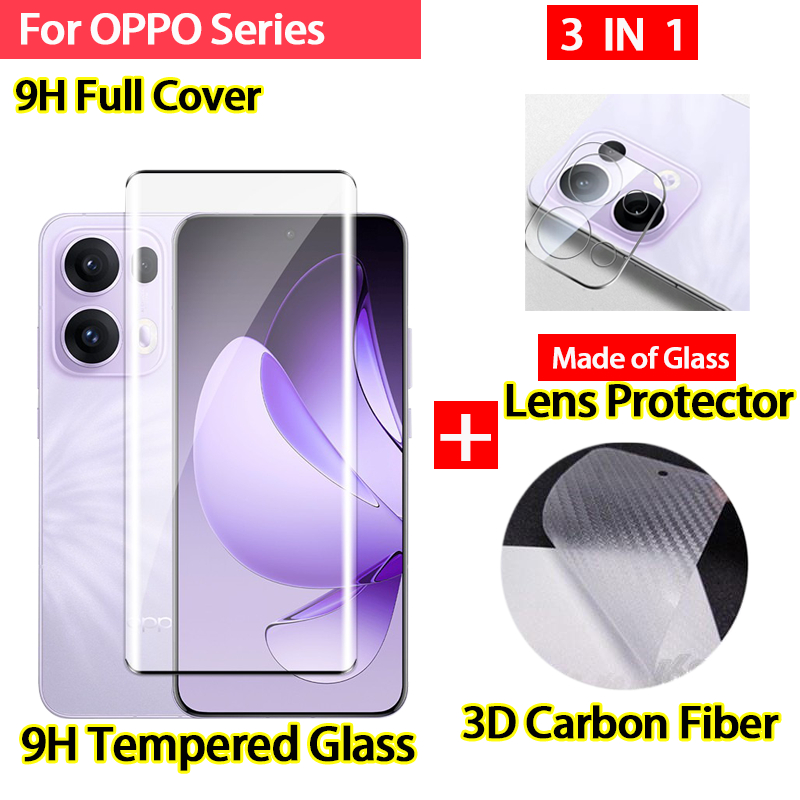 OPPO Reno 12 13 5G Tempered Glass OPPO Reno 13 12 Pro 5G Screen Protector Full Cover Screen Glass 3 In 1 Carbon fiber back film