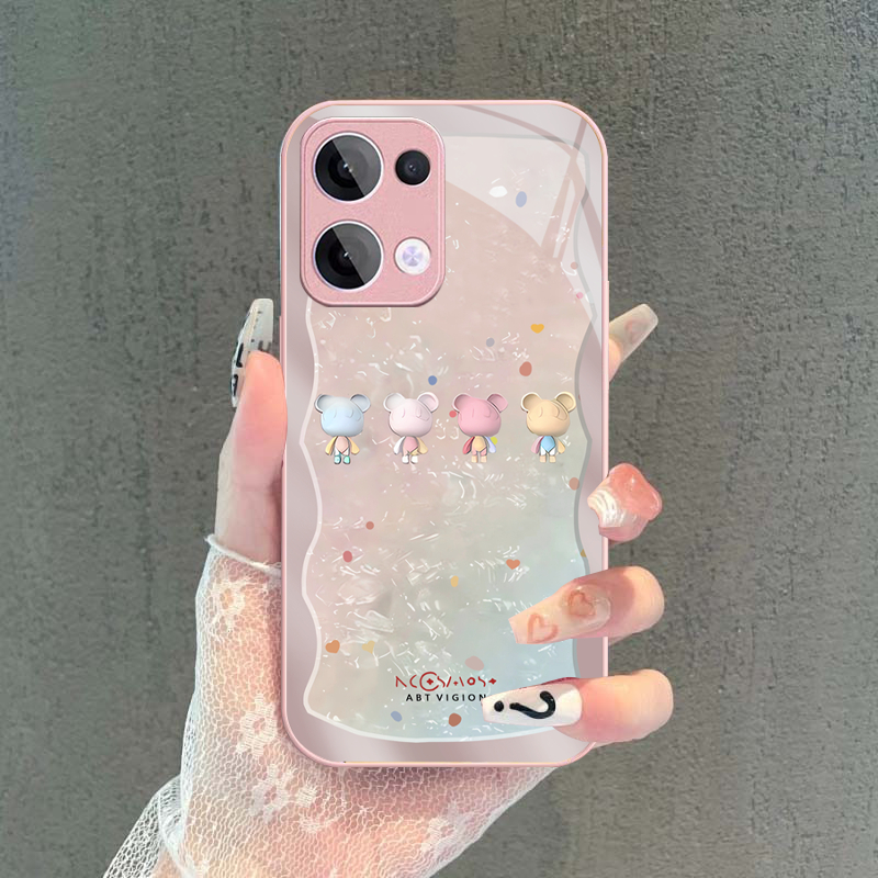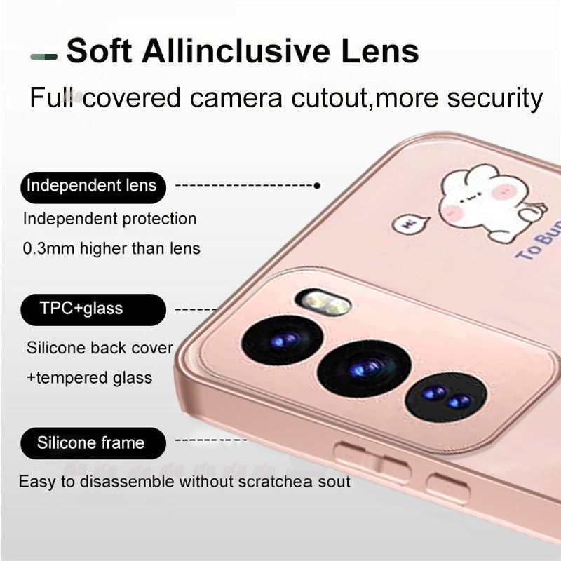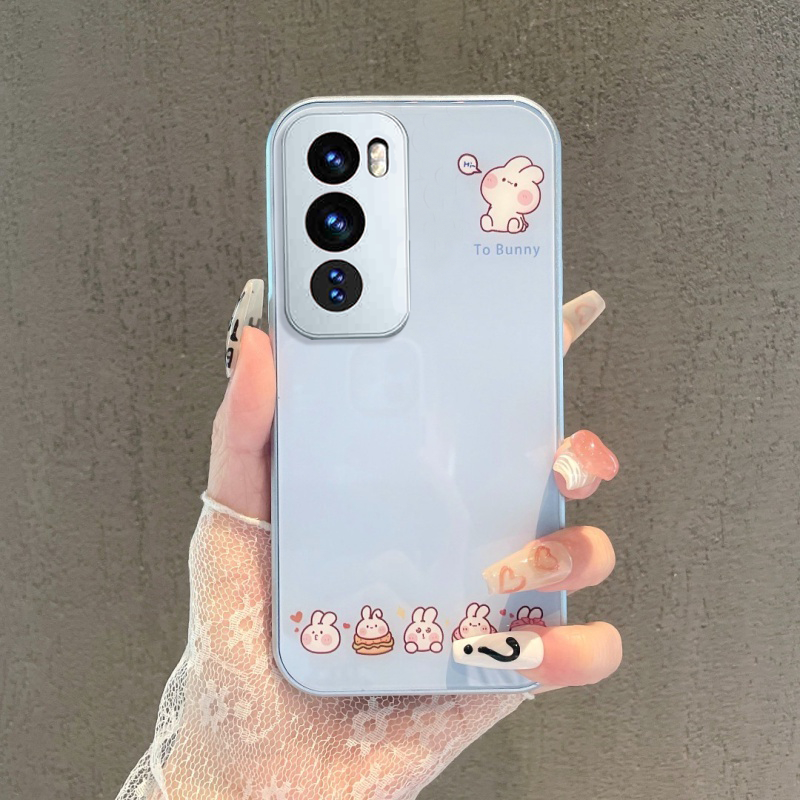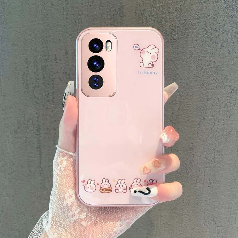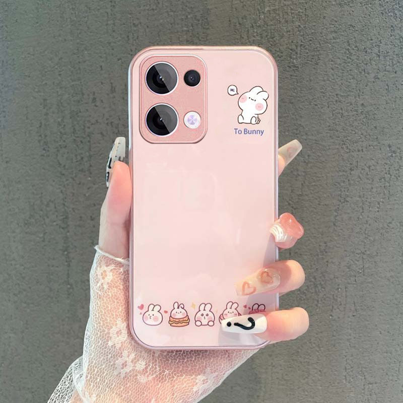 OPPO Reno 13 14 13F 14F Reno13 F 11 12 11F 10 5G Case OPPO Reno 14 13 10 11 12 Pro A79 5G Case Easter Bunny Luxury Liquid Glass Shockproof Case with Camera Protector Phone Case Cute Cartoon Bunny Rabbit Case for Girl Student Lady woman
