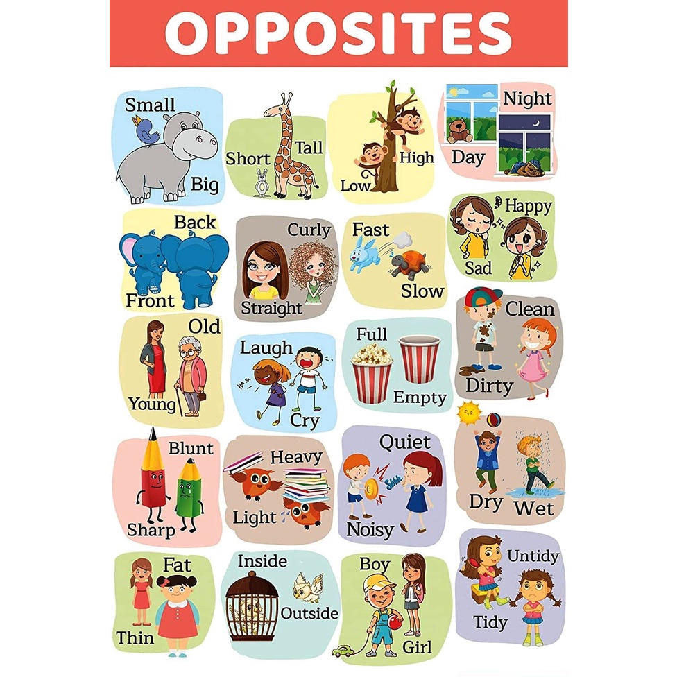 OPPOSITES POSTER, Educational Laminated Chart for kids