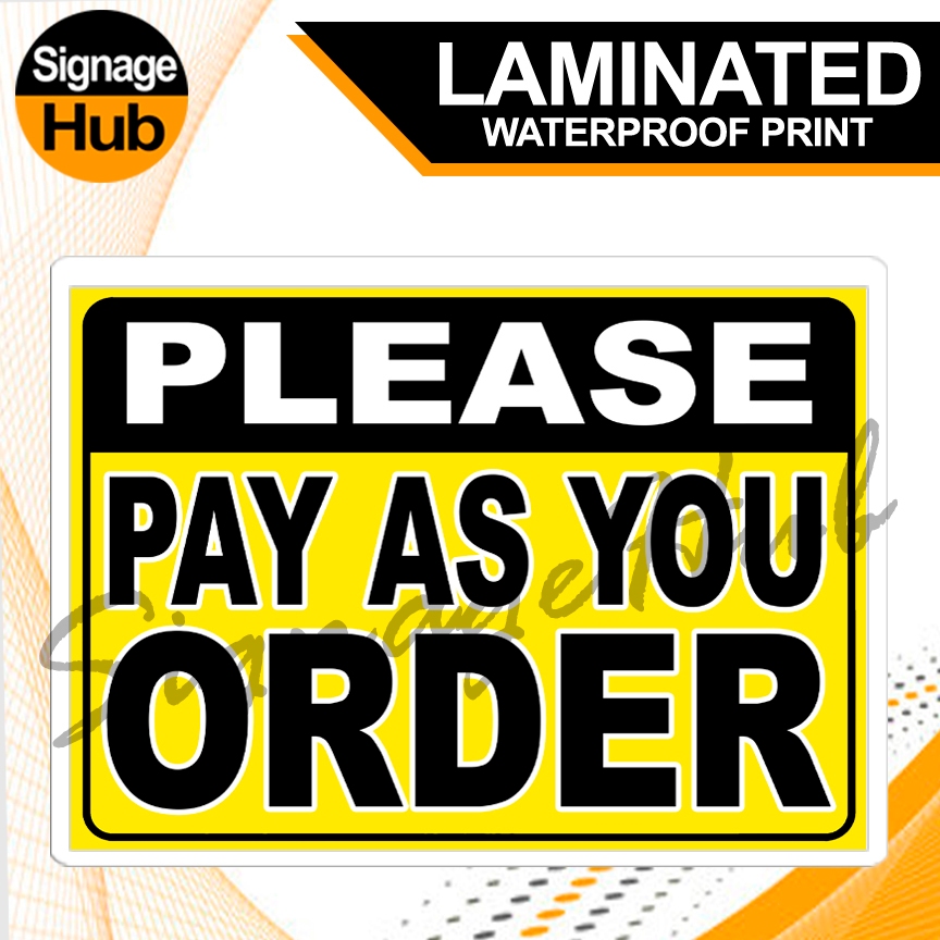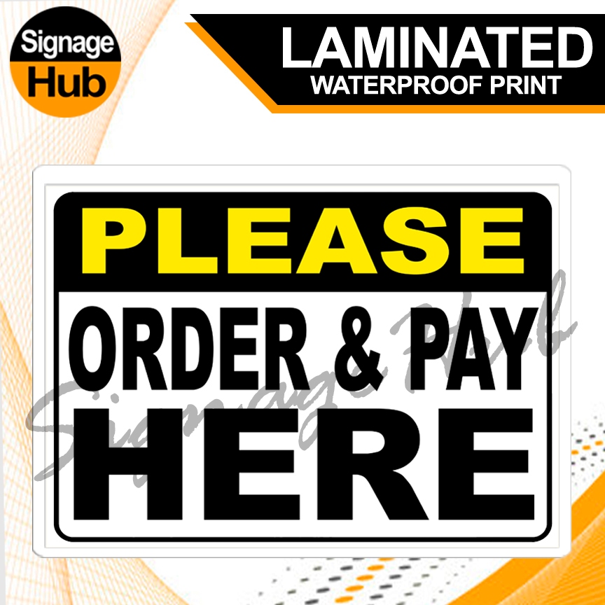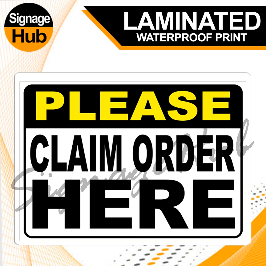 ORDER | CLAIM | PAY ORDER Signs 1 | Laminated Signage | A4 ( 8" X 11" inches ) | Waterproof Print