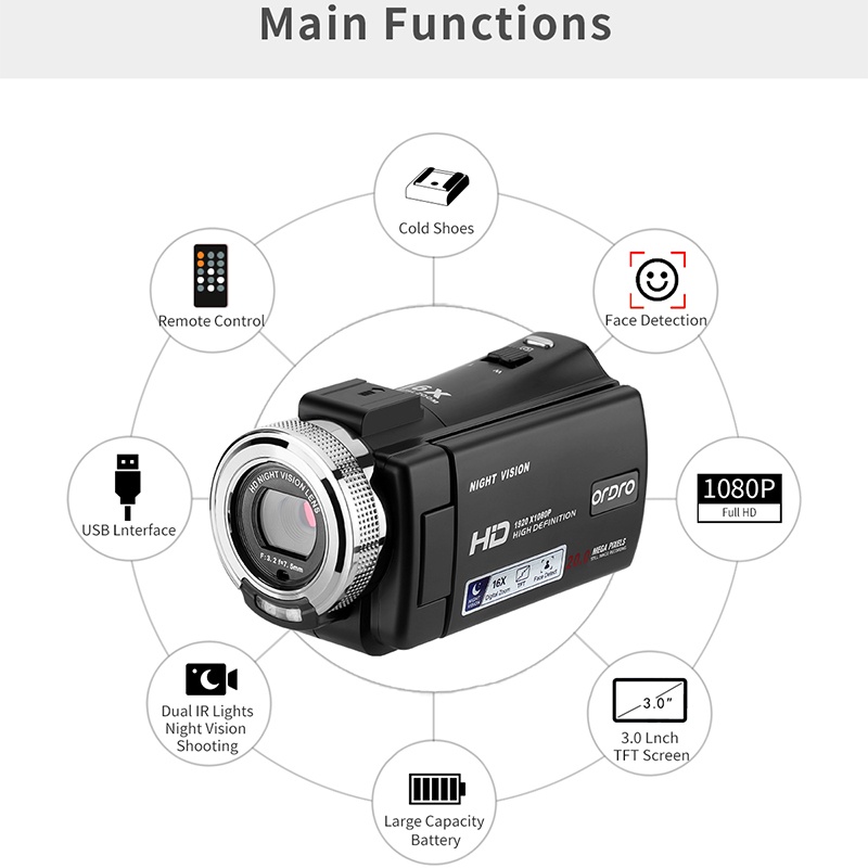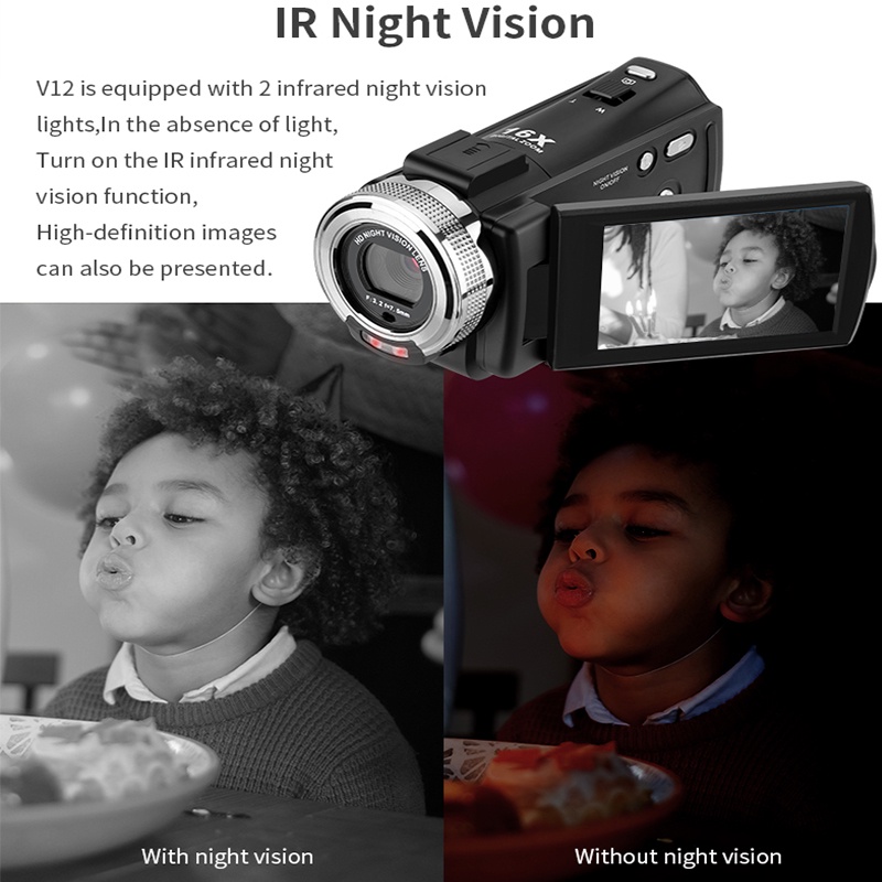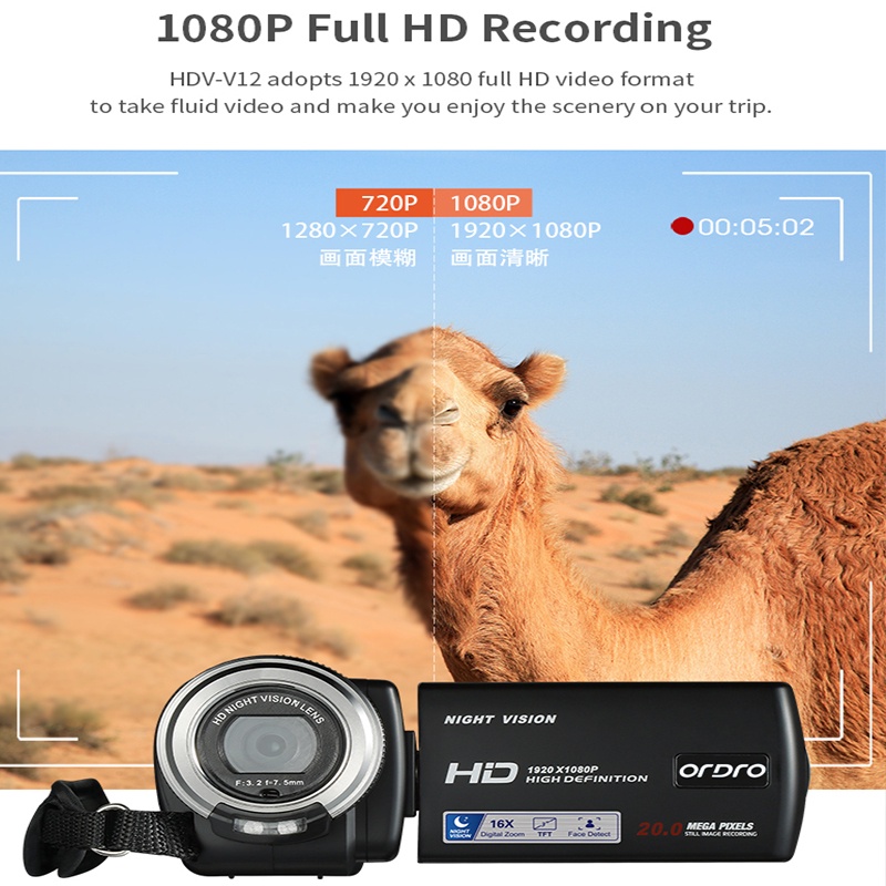 ORDRO V12 HD 1080P 30fps Digital Camera with 16X Digital Zoom Video Camera Portable Infrared Night Vision Camcorder Home and Kids Beginner Entry Level camera, camera for vlogging