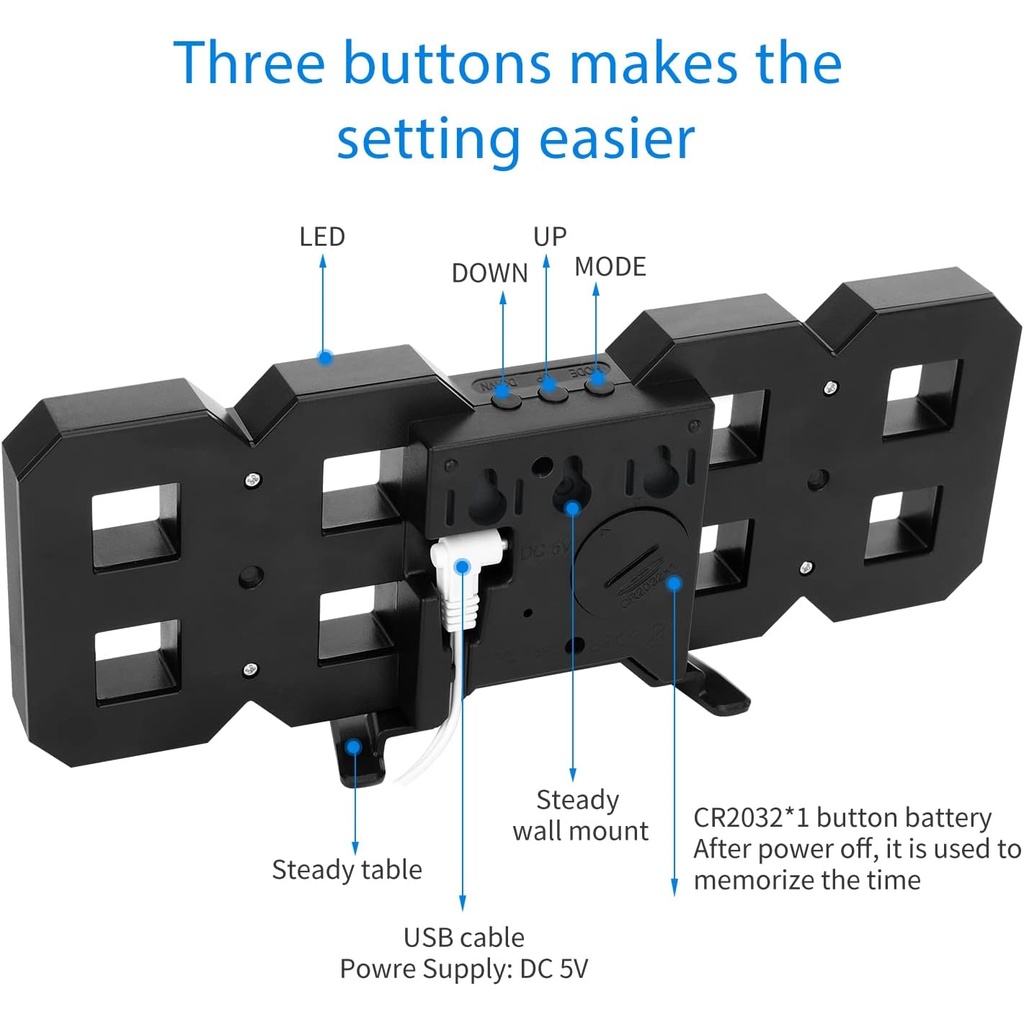 ORIA 3D LED Digital Alarm Clock Stereo Wall Clock with 12/24 Hour Display for Home Office