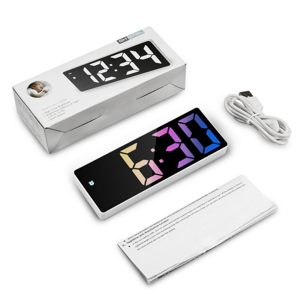 ORIA Digital Alarm Clock With LED Display Temperature and Date Snooze Function Voice Command Digital Clock for Bedroom Home Office