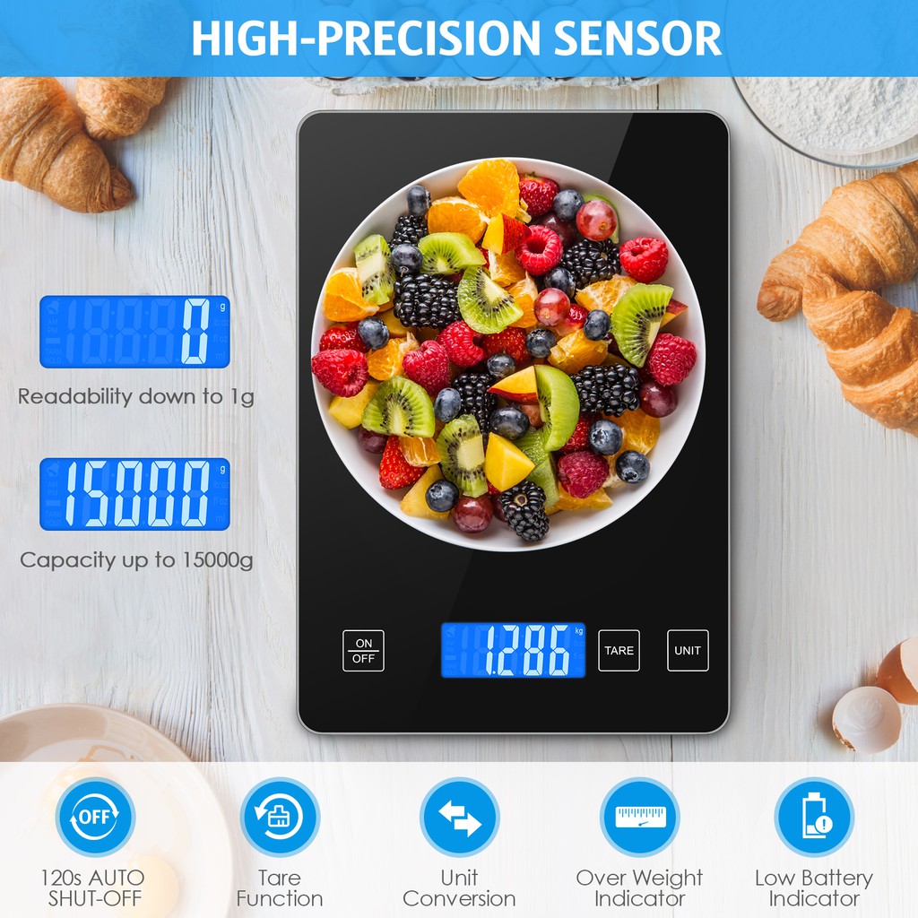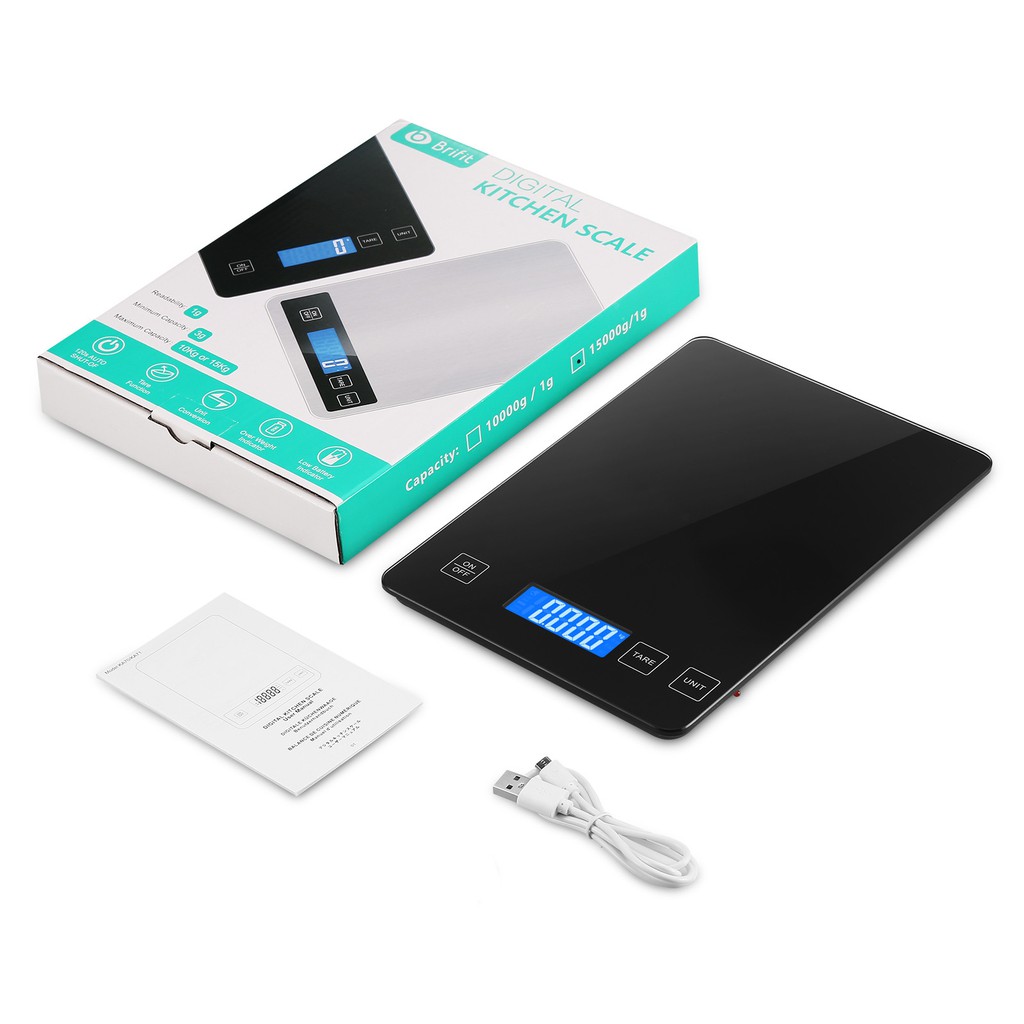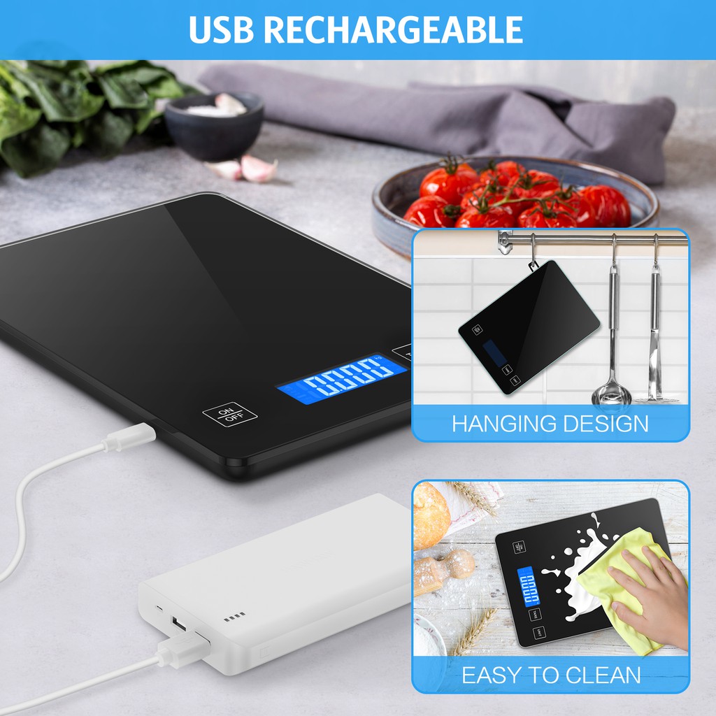 ORIA Digital Weighing Scale 15kg/1g USB Rechargeable Kitchen Scale Accurate Weighing Scale