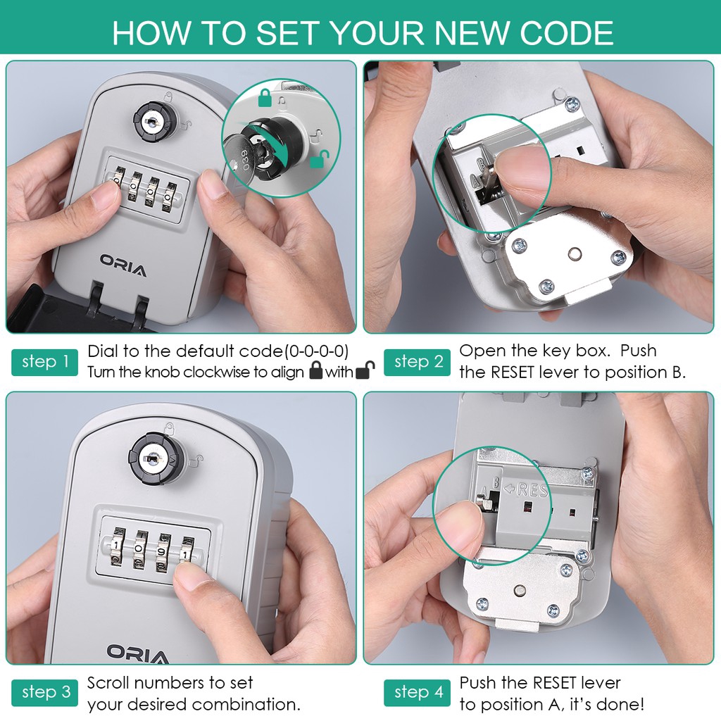 ORIA Large Capacity 4 Digit Key Storage Lock Box Resettable Code(with 1 Key)