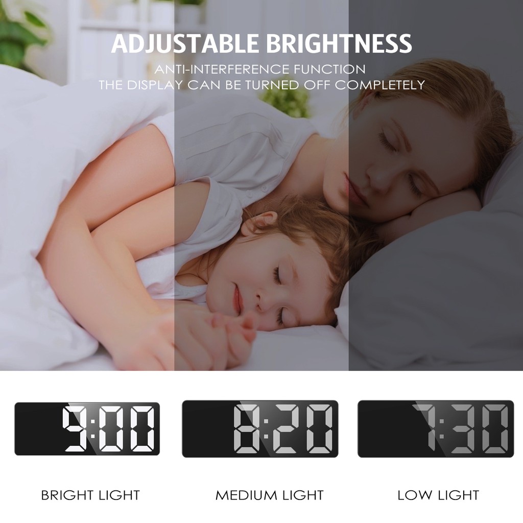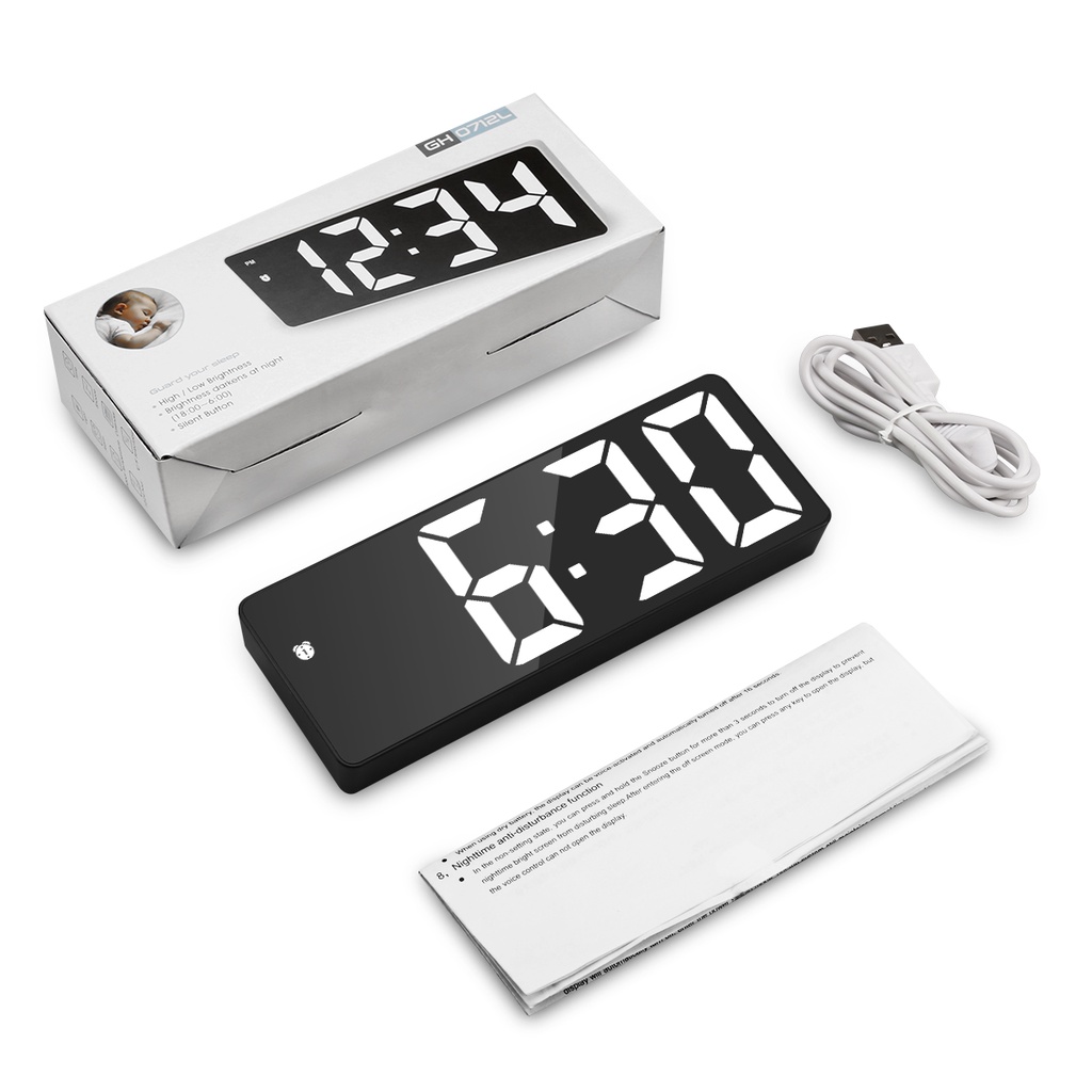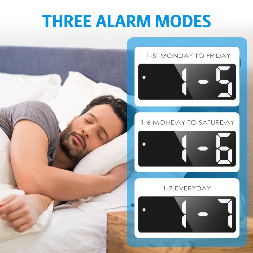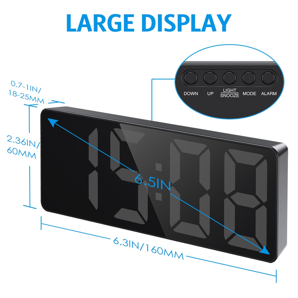 ORIA USB/Battery Powered Digital Alarm Clock with Large LED Display 3 Alarm Modes Voice Control