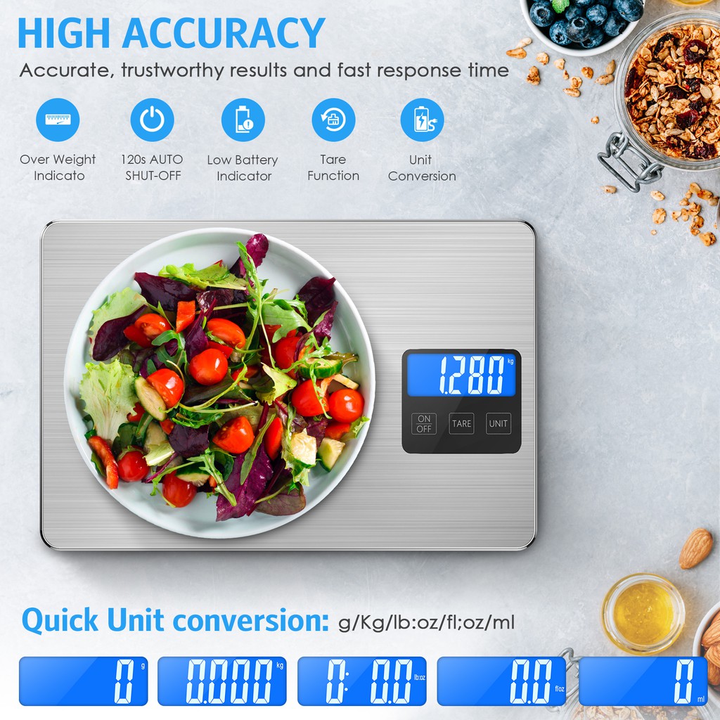ORIA USB Rechargeable Glass Screen Digital Kitchen Scale Food Scale(3g-15kg)