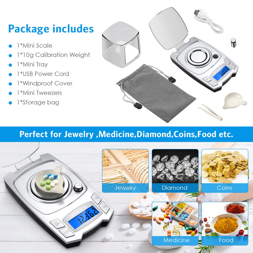 ORIA USB Rechargeable High-precision Digital Scale Jewelry Medicinal Laboratory Scale(50g/100g)