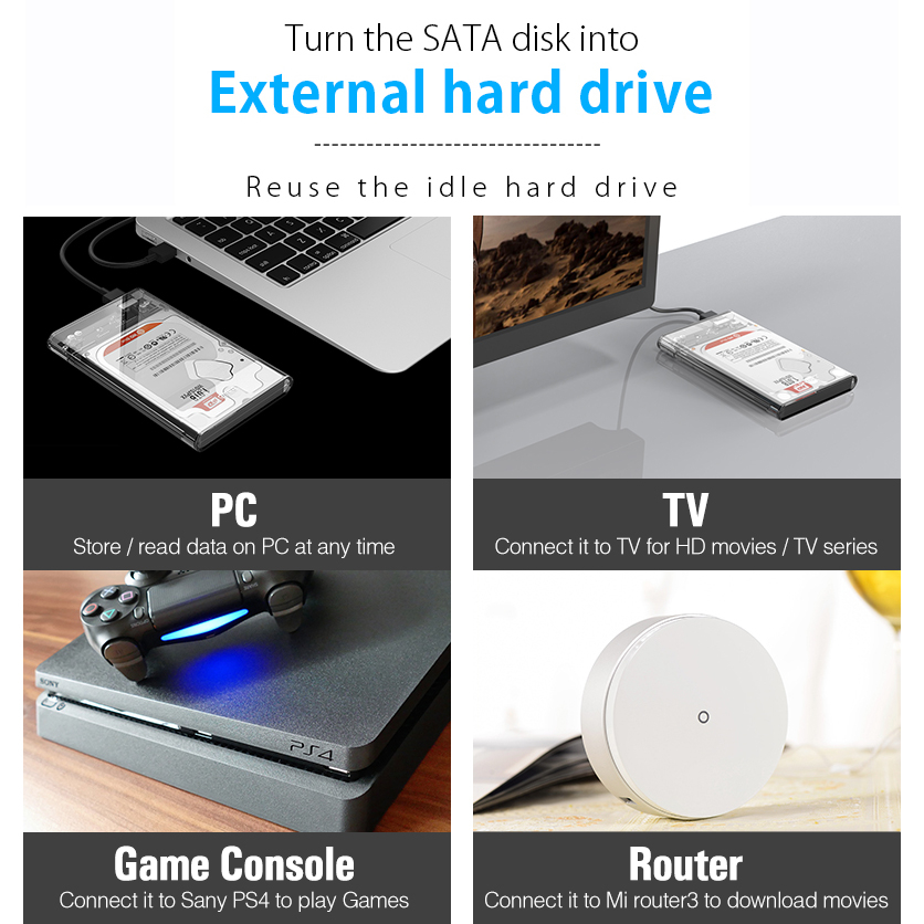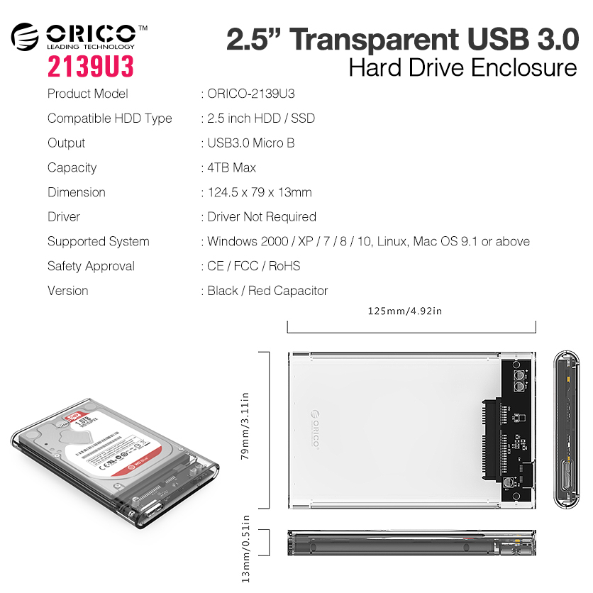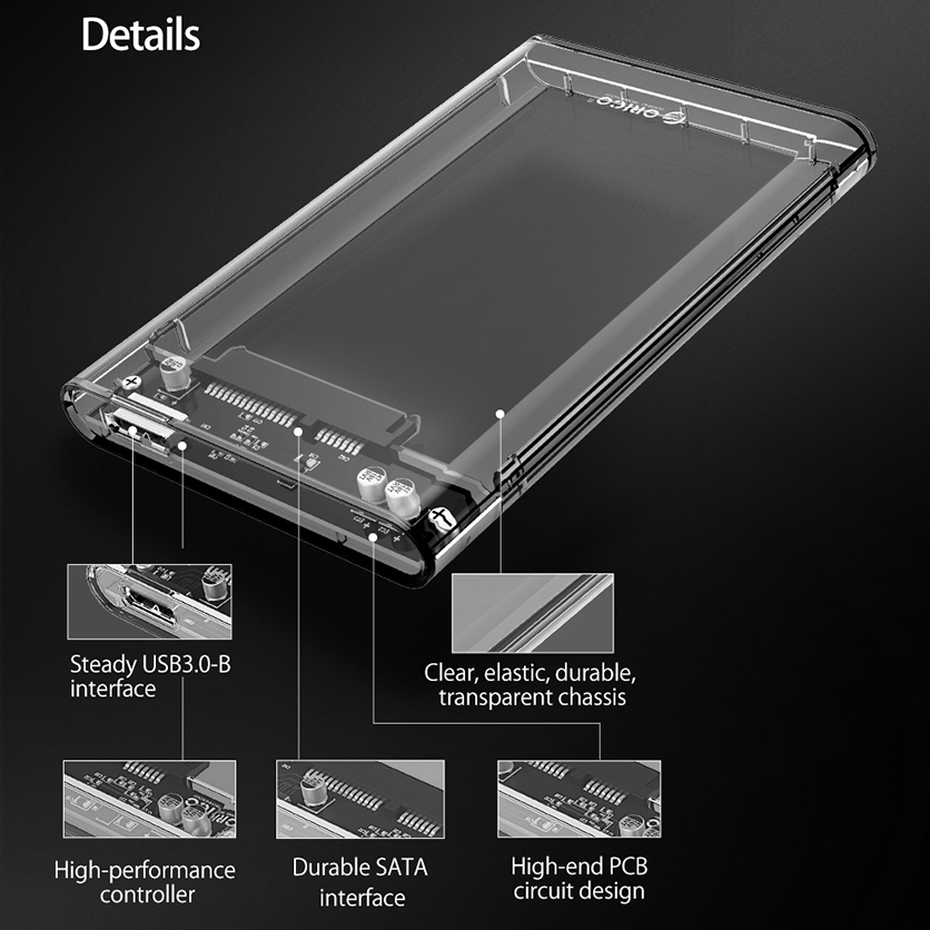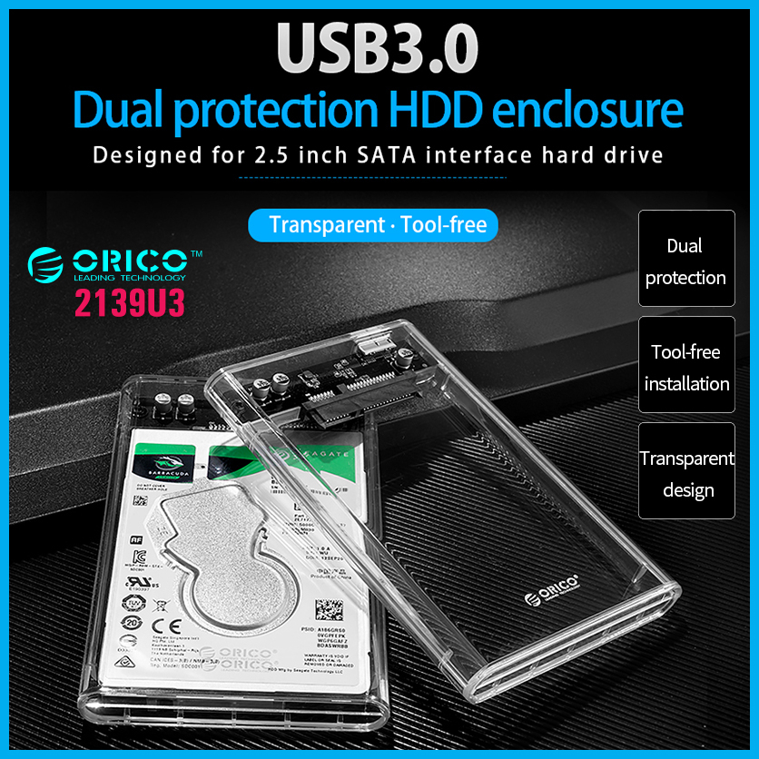 ORICO 2.5" HDD Case - USB 3.0 Transparent Support 2.5 Inch HDD Enclosure