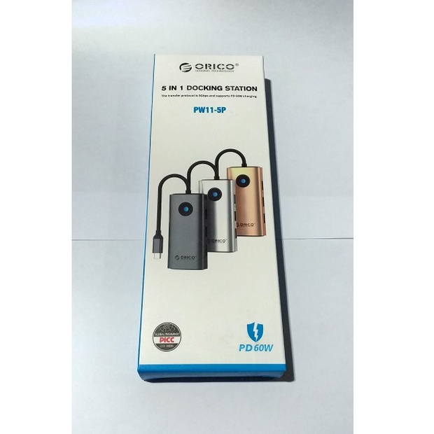 ORICO 5 in 1 Docking Station, Multiple USB Hub 3.0 Port Type C Adaptor 5Gbps PD60W 4K@Hz HDMI