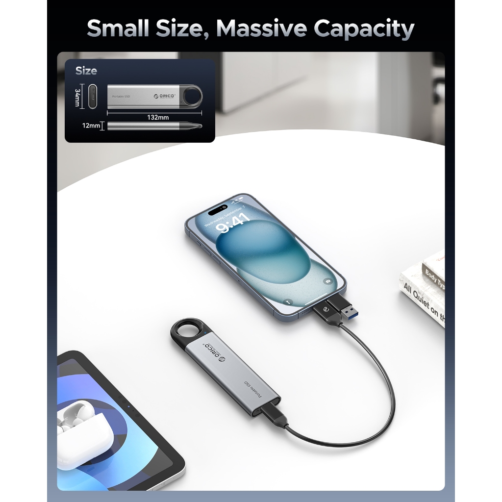 ORICO C5 1TB Ring External Portable SSD Up to 500MB/s With USB-A/C Cable for iPhone 17 Pro(ORICO-C5)