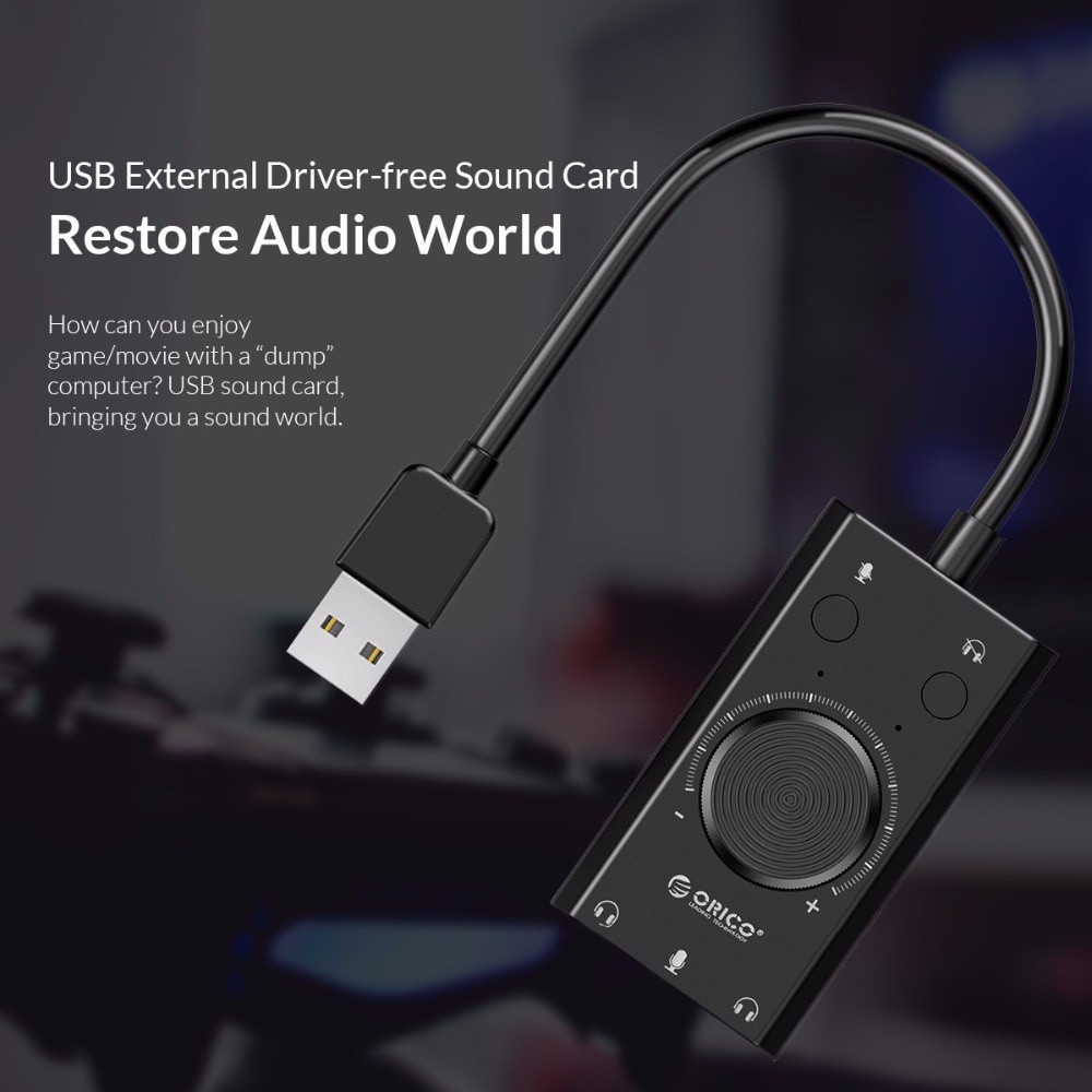 ORICO External USB Sound Card Stereo Mic Speaker Headset Audio Jack Adapter Mute Switch Volume Adjustment Free Drive