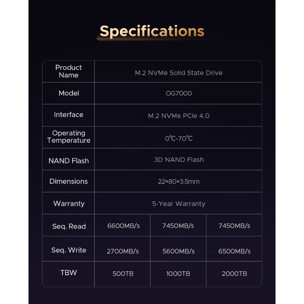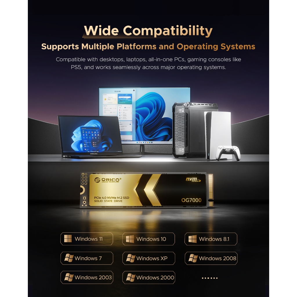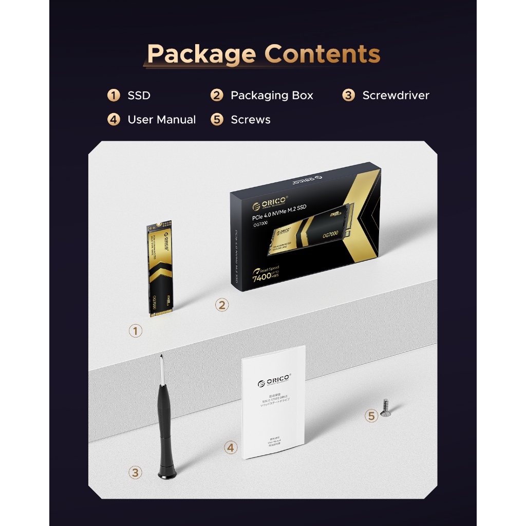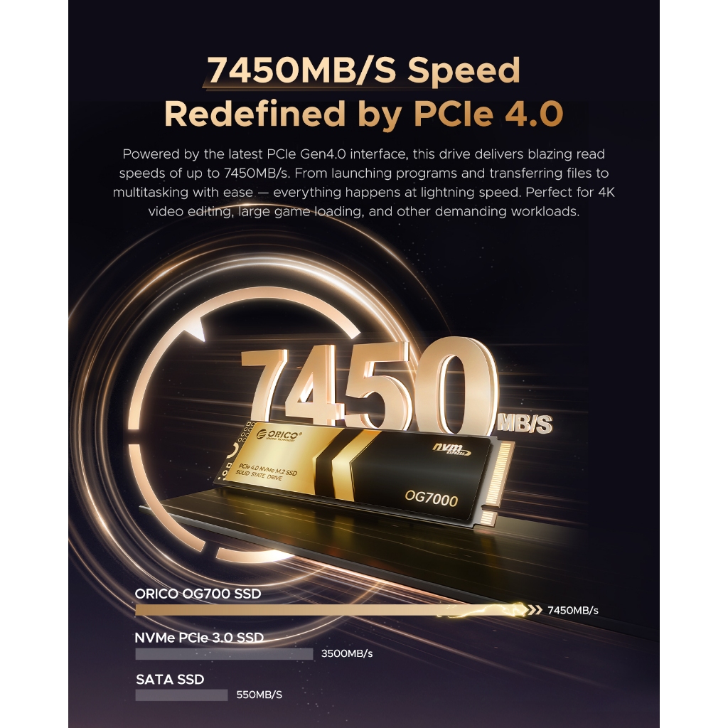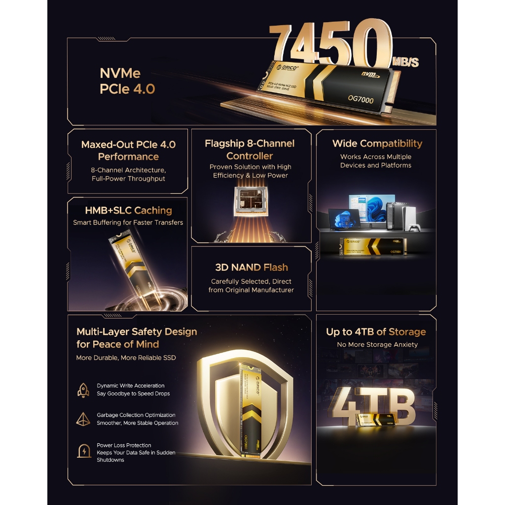 ORICO M.2 Solid State Drive SSD 1T 2T 4TB PCIe 4.0 SSD for Desktop Computers and Laptops(OG7000)