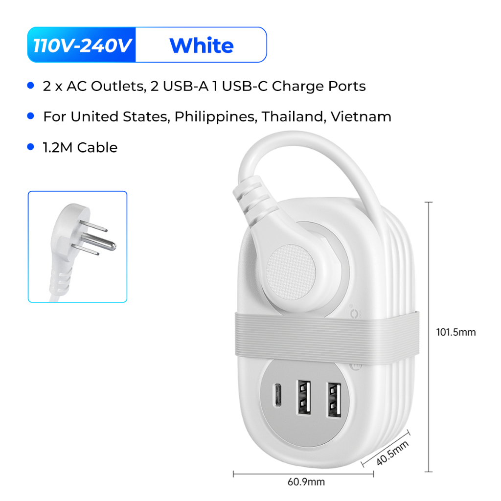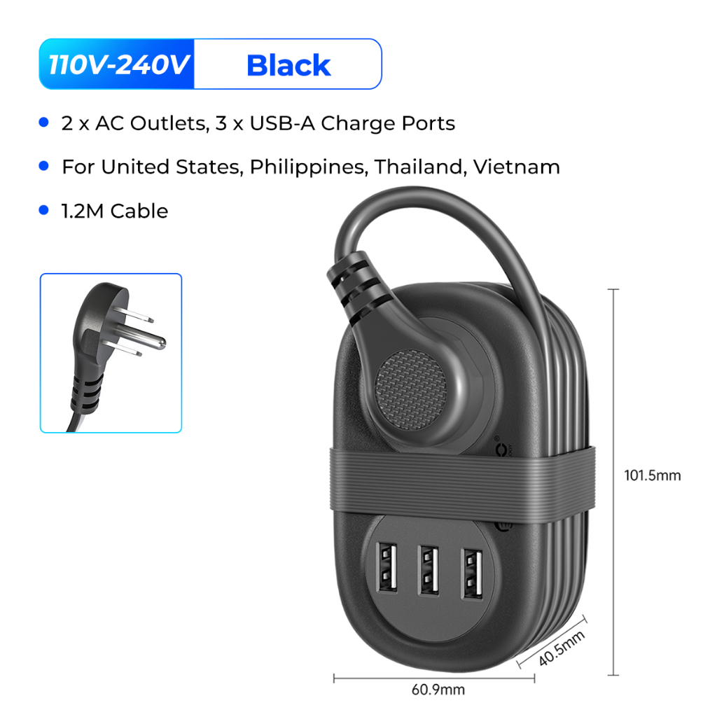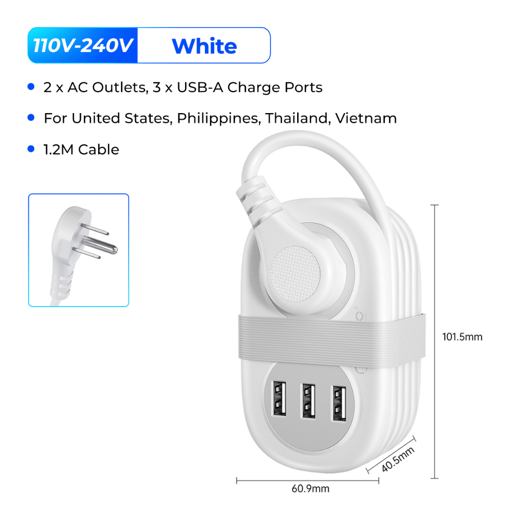 ORICO US Plug Travel Power Strip with USB Ports 1.2M Extension Cord Flat Plug Power Strip Cruise Travel(AP3)