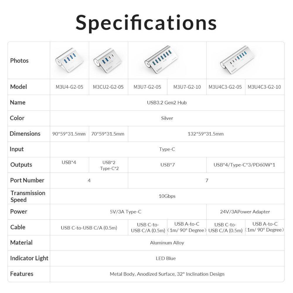 ORICO USB 3.2 Gen 2 10Gbps Multi-Port Type-C Hub with (Optional) Power Supply with PD 60W Charging -