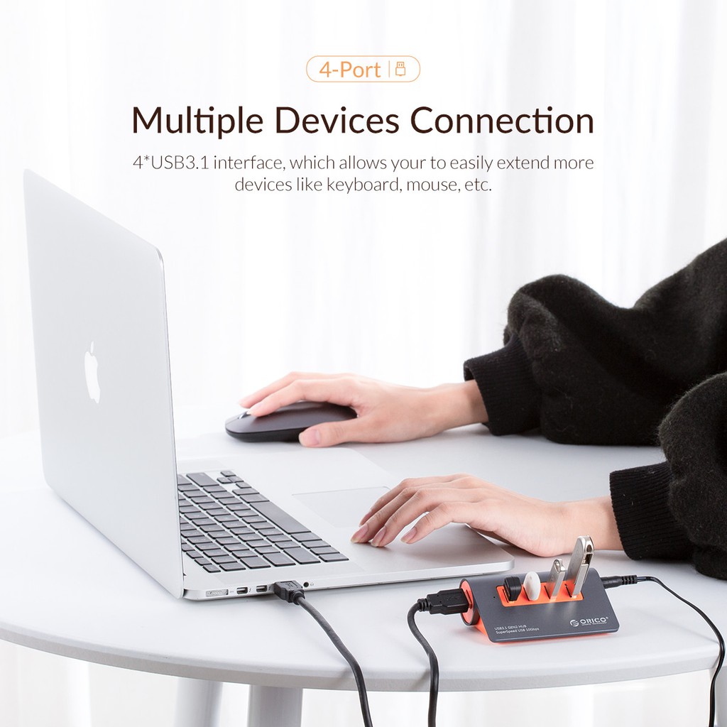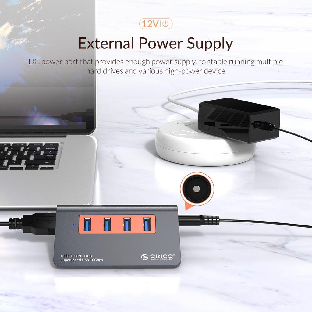 ORICO USB Hub 4 Ports USB3.1 Gen2 Aluminum 10Gbps With 12V Power Adapter