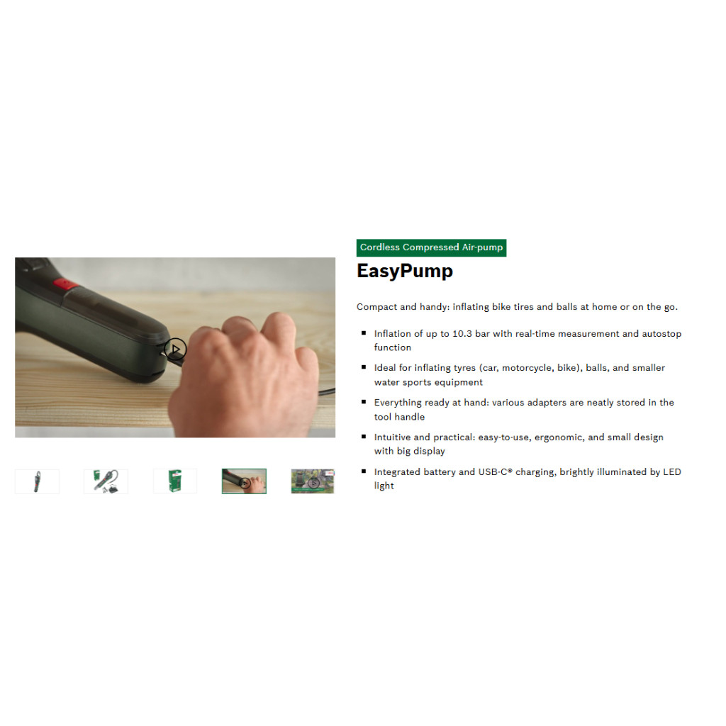 ORIGINAL BOSCH Cordless 3.6V EasyPump Portable Air Compressor