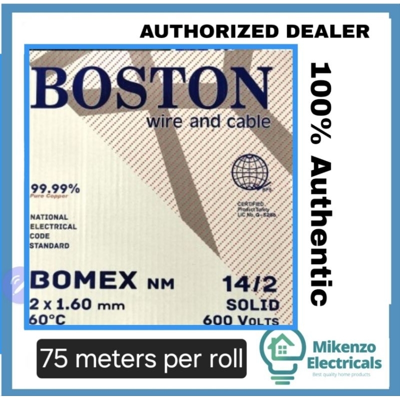 ORIGINAL BOSTON BOMEX NM 14/2, 12/2, 10/2 PDX WIRE (per box)(White Color) 75meters