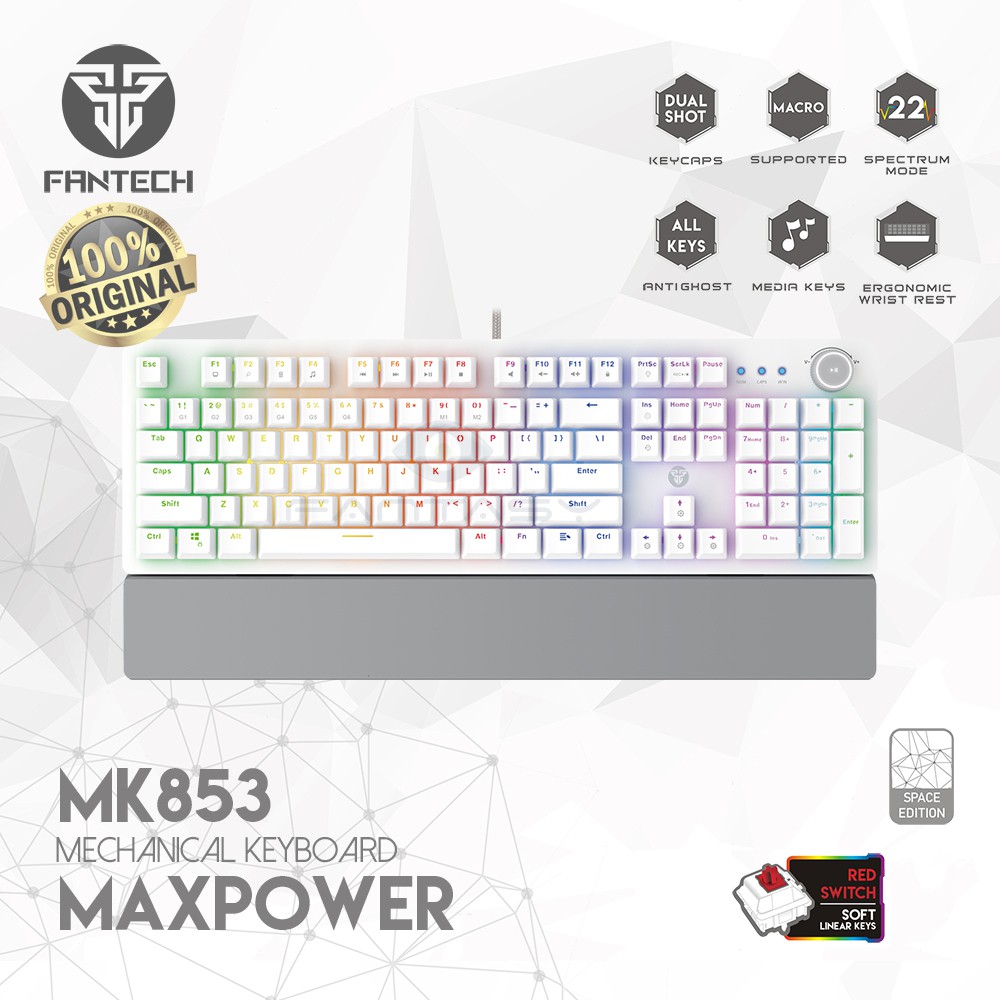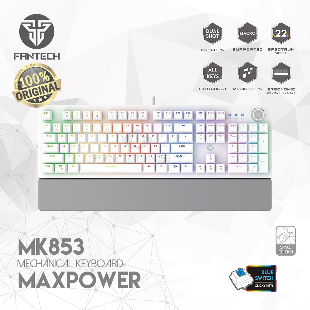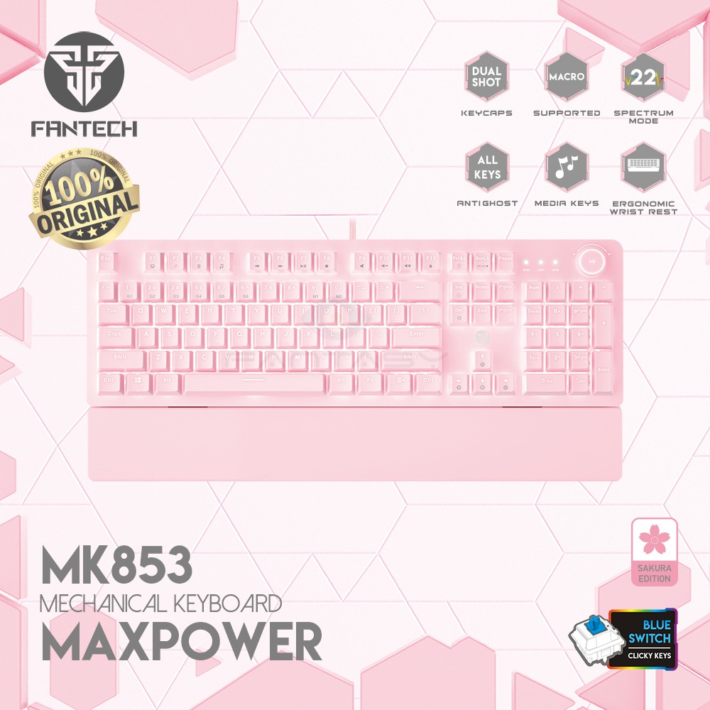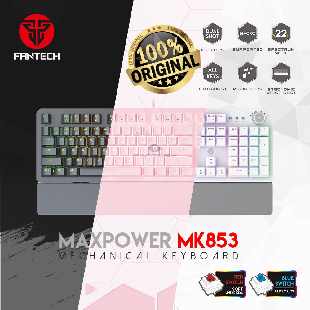 ORIGINAL FANTECH MK853 Maxpower Mechanical GAMING KEYBOARD PINK WHITE BLACK BLUE or RED SWITCH