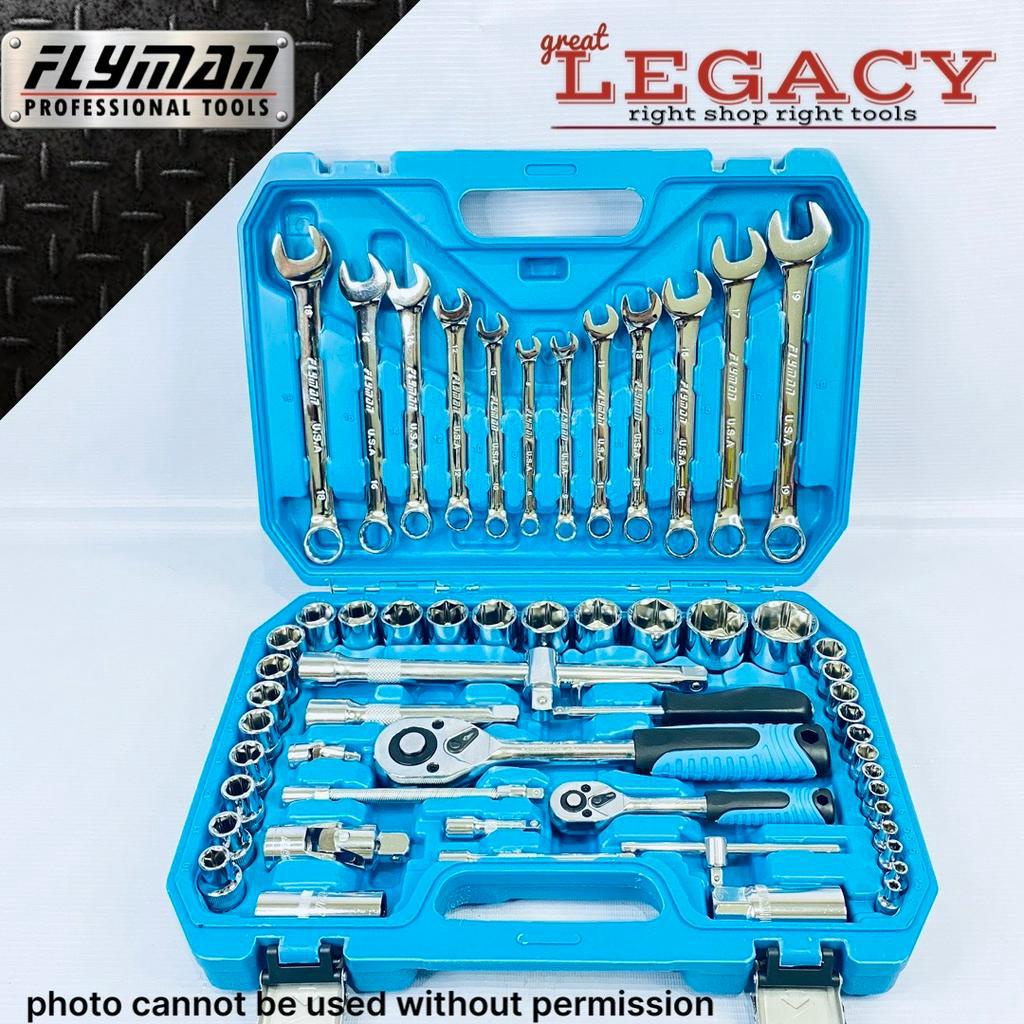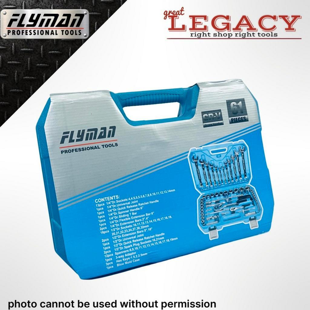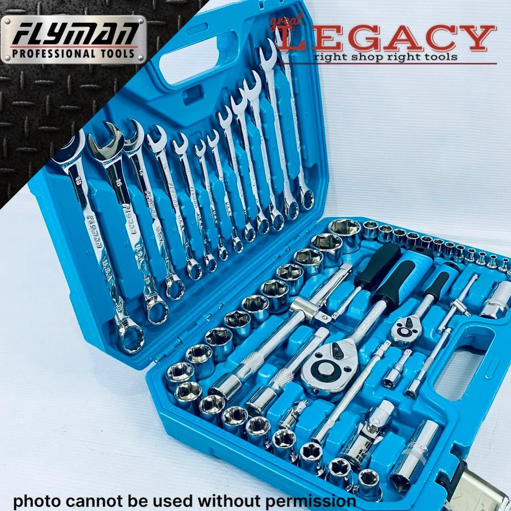 ORIGINAL FLYMAN 61 PCS SOCKET WRENCH SET 1/4 AND 1/2 DRIVE WITH COMBINATION WRENCH COD GL