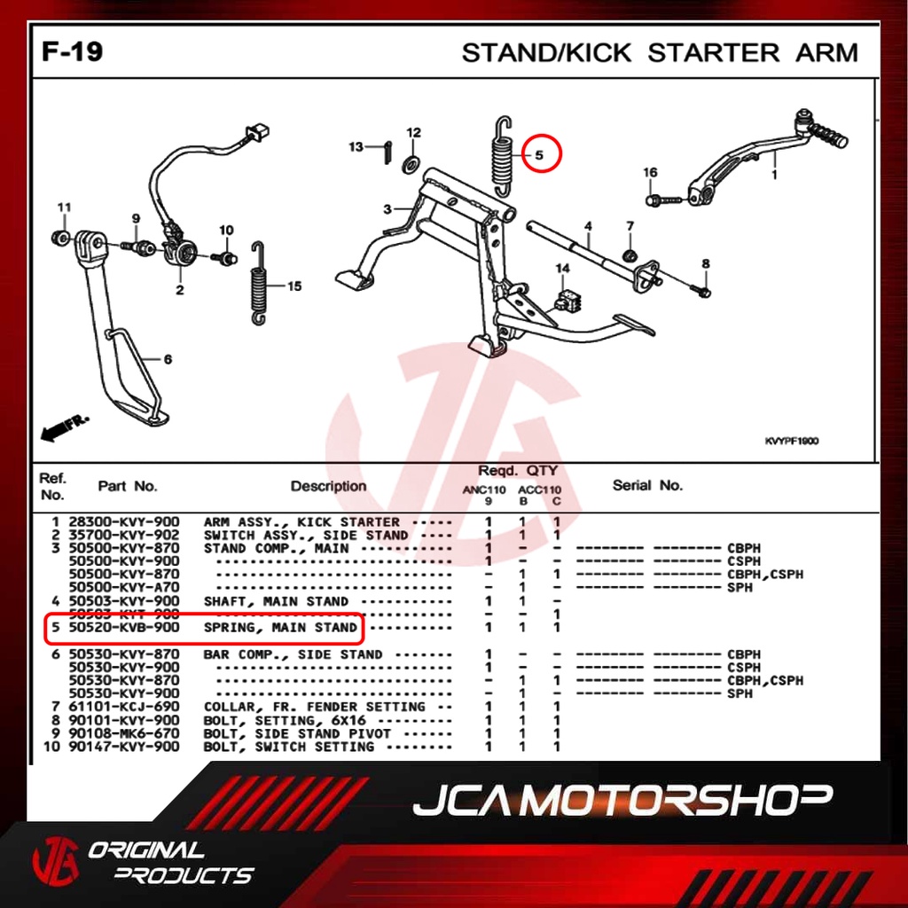 ORIGINAL HONDA SPRING, MAIN STAND (CENTER STAND SPRING) FOR ALL BEAT , ALL CLICK, SCOOPY, ADV150/160