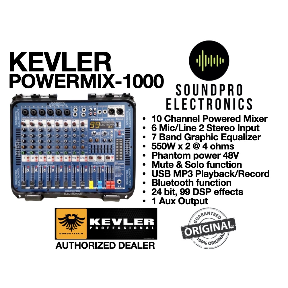 ORIGINAL KEVLER POWERMIX-1000 10Channel Powered Mixer 550watts x2