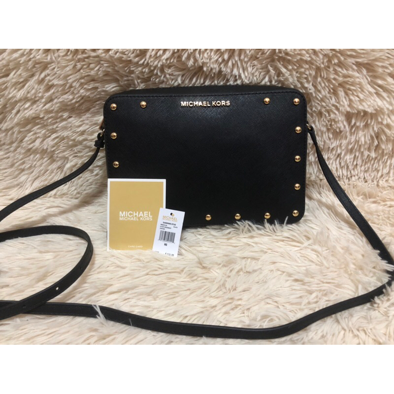 ORIGINAL Michael Kors Sandrine Stud MK Crossbody Bag Purse Saffiano Leather 38S8CD1C3L
