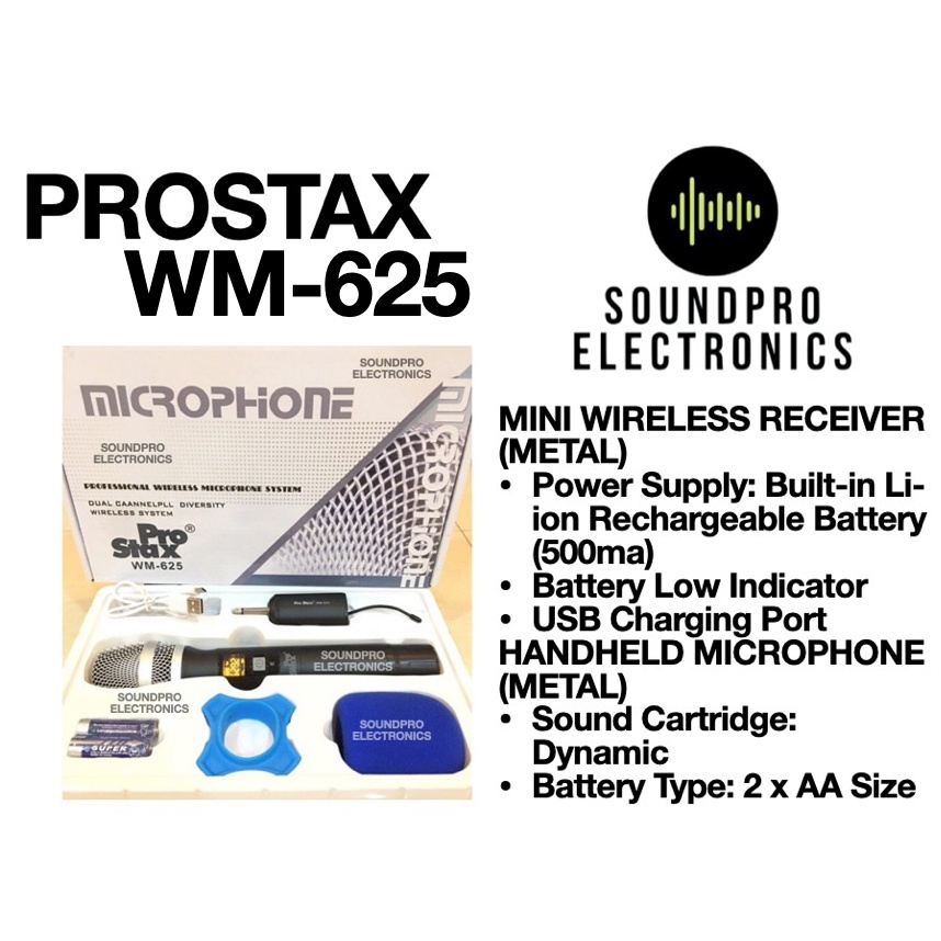 ORIGINAL Pro Stax WM-625 UHF Wireless Microphone With Rechargeable Receiver