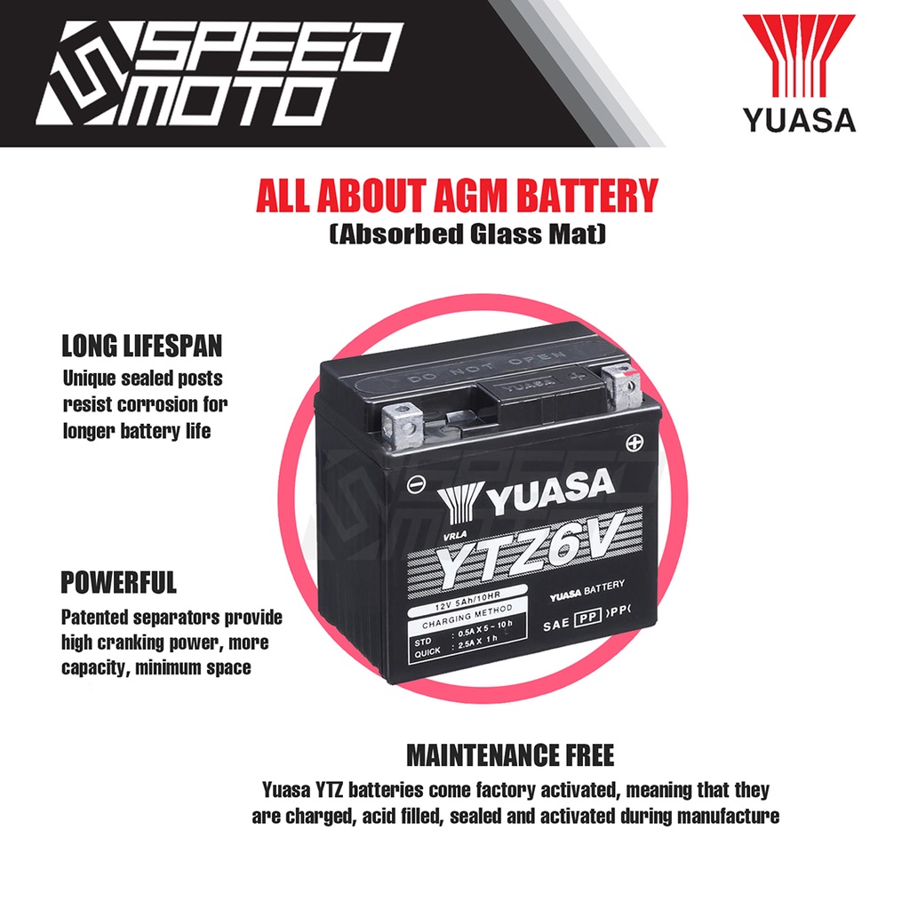 ORIGINAL YUASA YTZ6V HIGH PERFORMANCE FACTORY ACTIVATED NON-SPILLABLE BATTERY FOR HONDA CLICK