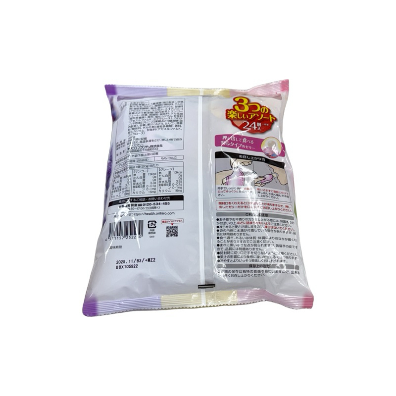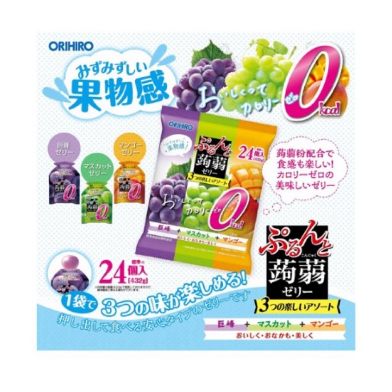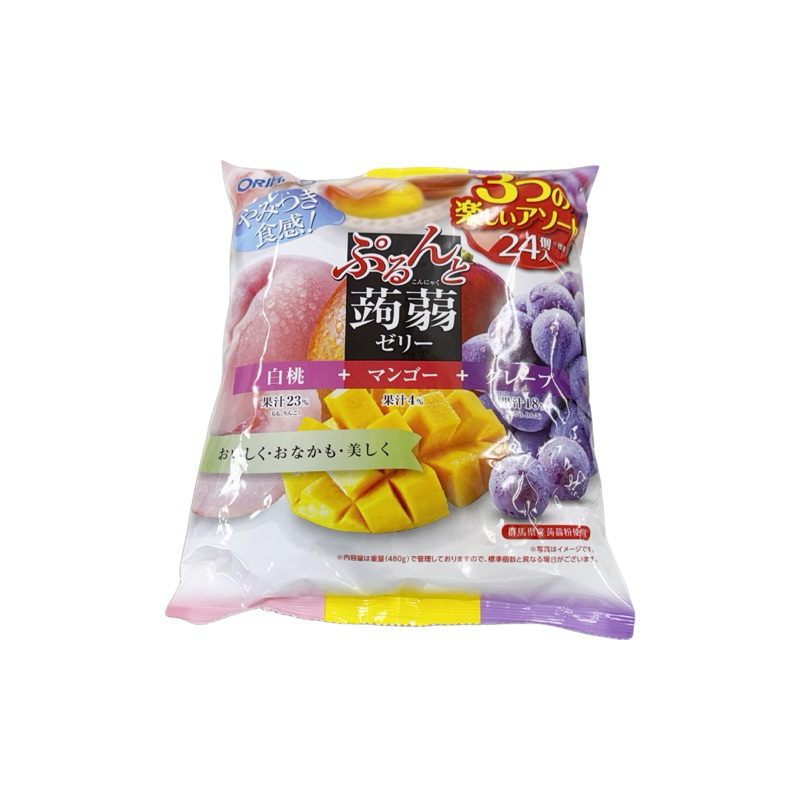 ORIHIRO Konjac Jelly Packets Large Pack Zero Calorie White Peach Grape Mango Flavor 24 pcs
