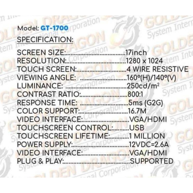 ORION GT-1700 17" TOUCHSCREEN MONITOR