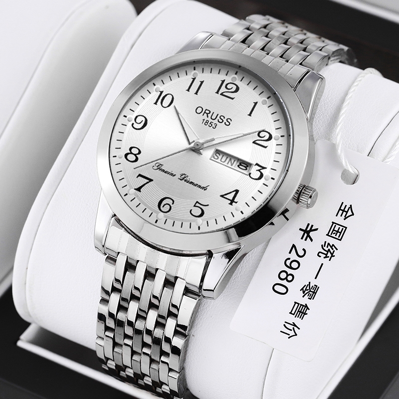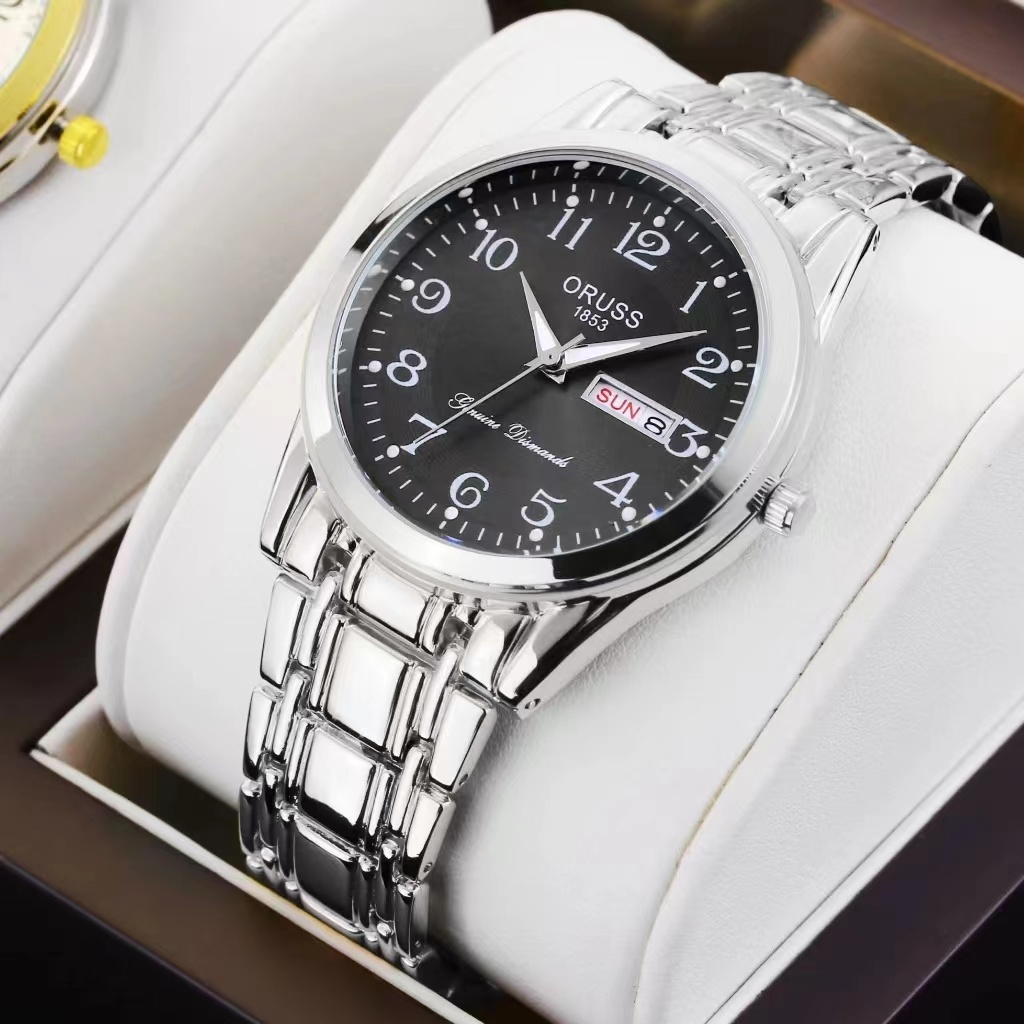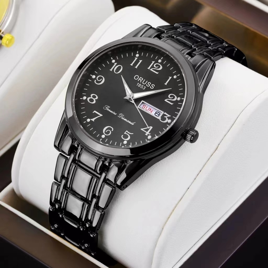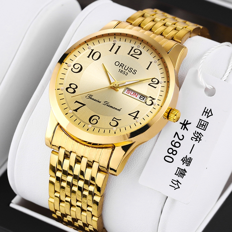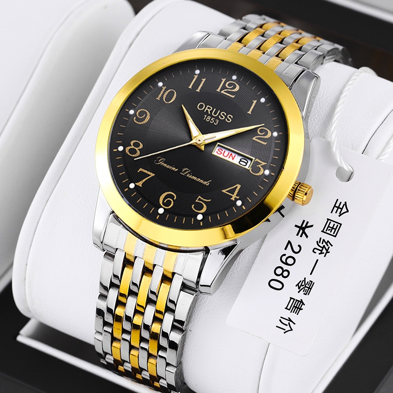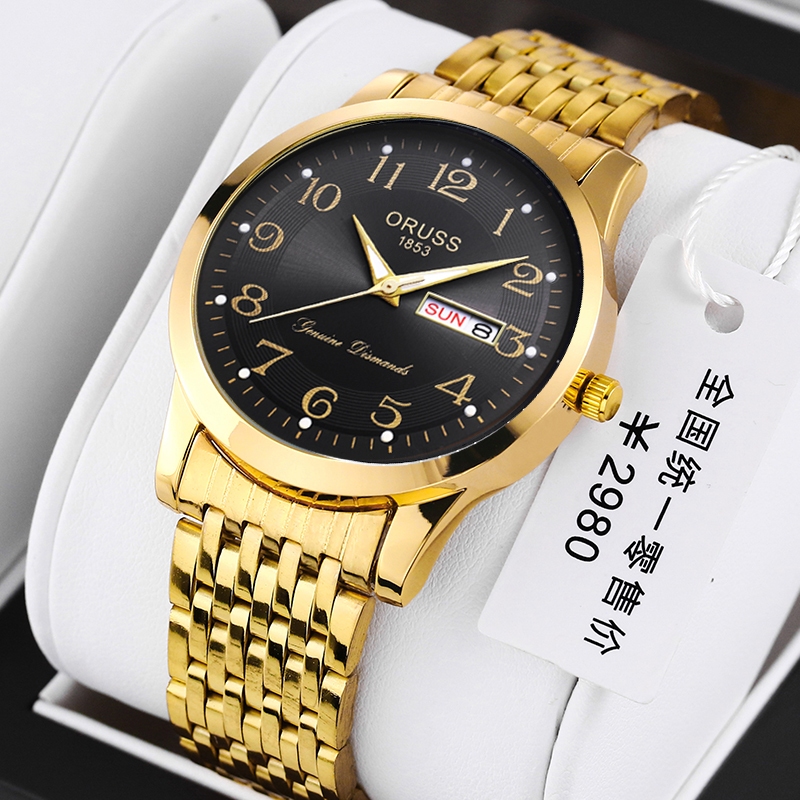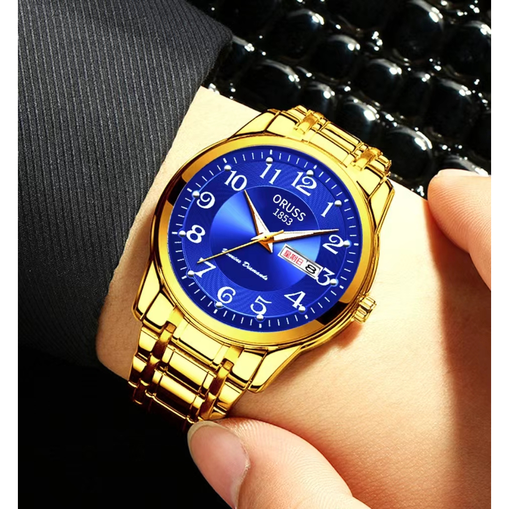 ORUSS Original Stainless Steel Dual Calendar Waterproof Luxury Fashion Luminous Gold Men's Watch Diamond Korean Version Automatic Quartz Swiss Wrist Watch For Men