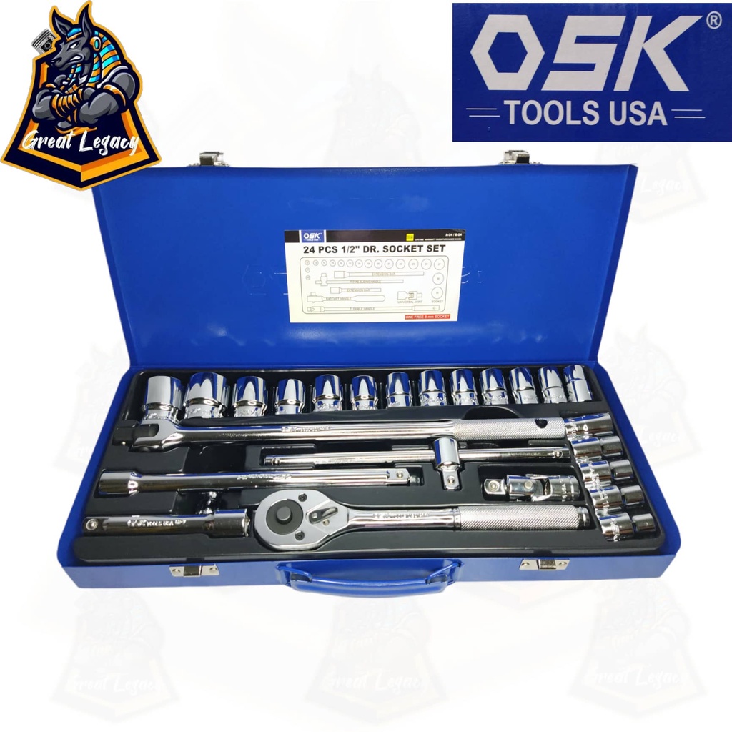 OSK TOOLS USA 24 Pcs. 1/2 Drive Socket Wrench Set 6 Point (Hex Type)