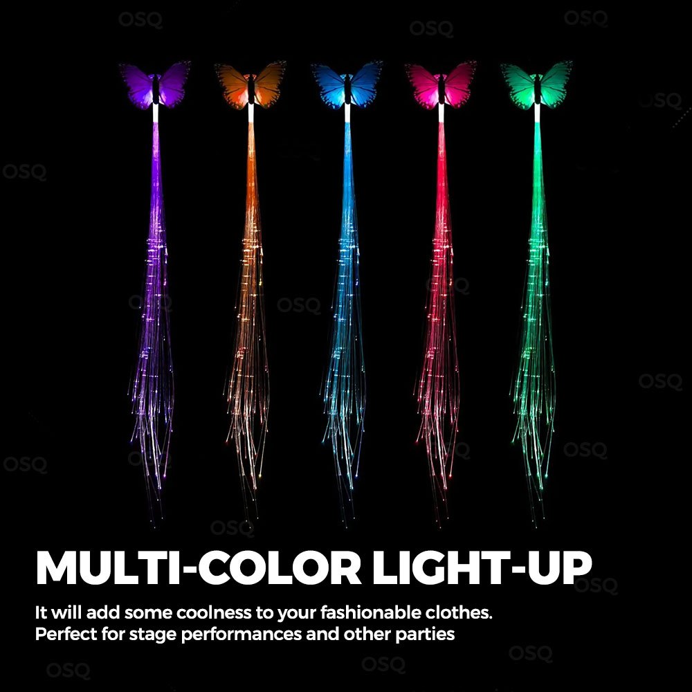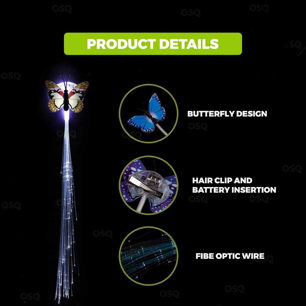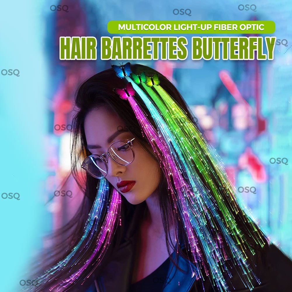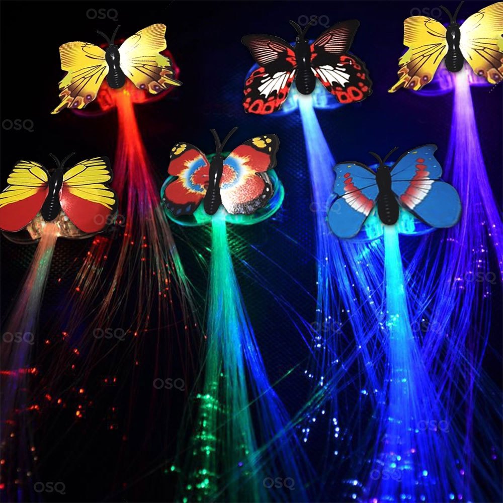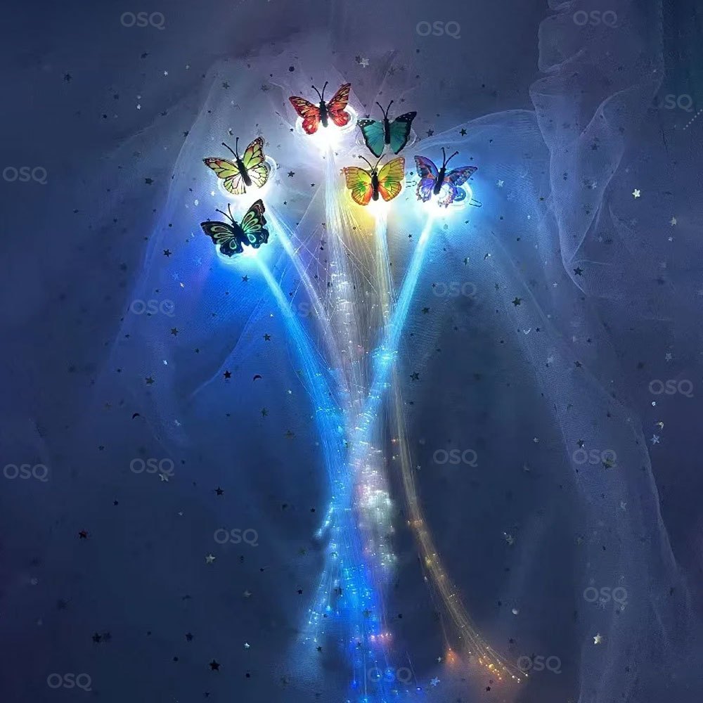 OSQ LED Flashing Light Hair Clip Multicolor Light-Up Fiber Optic LED Hair Barrettes Butterfly Design