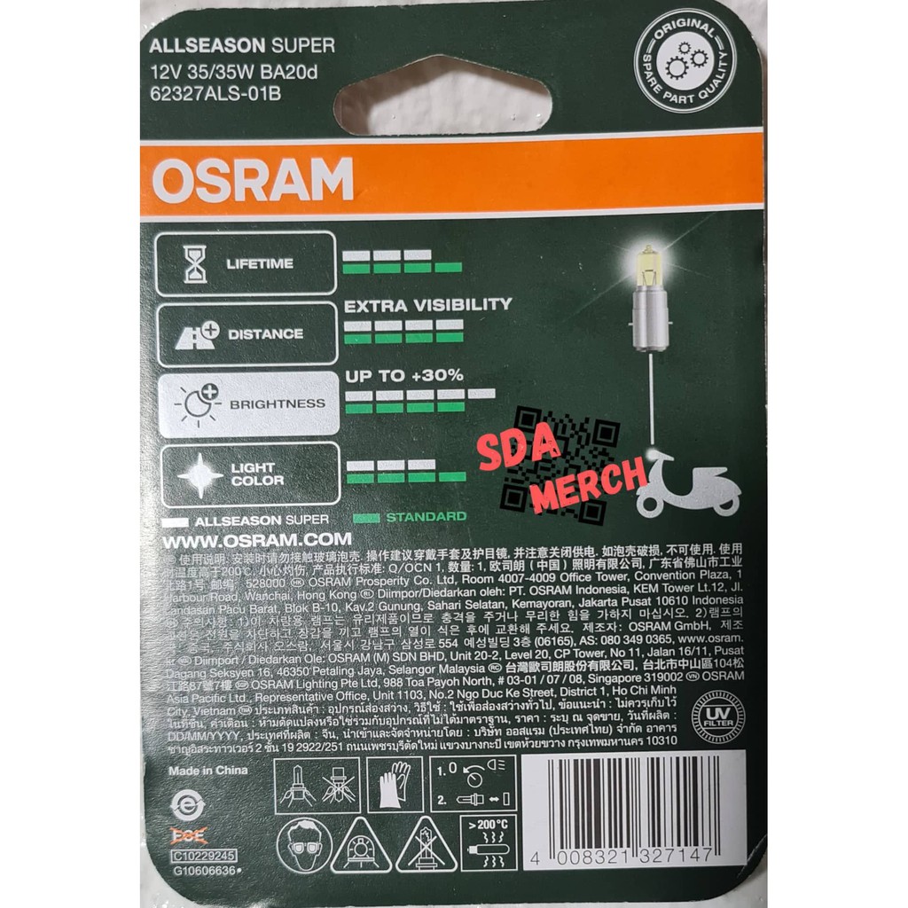 OSRAM AllSeason Super Headlight 12V 35/35W BA20d with FREE Fuel Filter