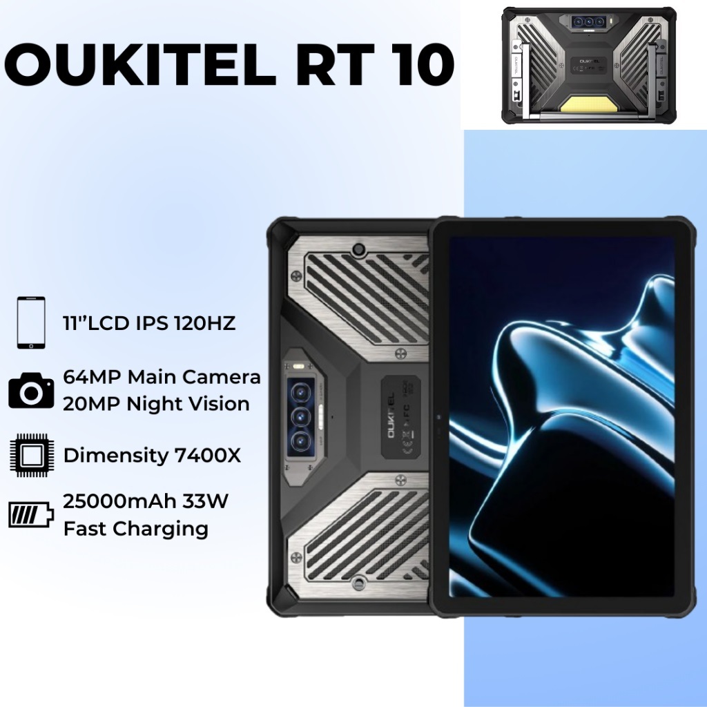 OUKITEL RT10 5G Rugged Tablet 25000mAh 11" FHD+IPS Display 36GB+512GB MTK 7400X 64MP Android 15