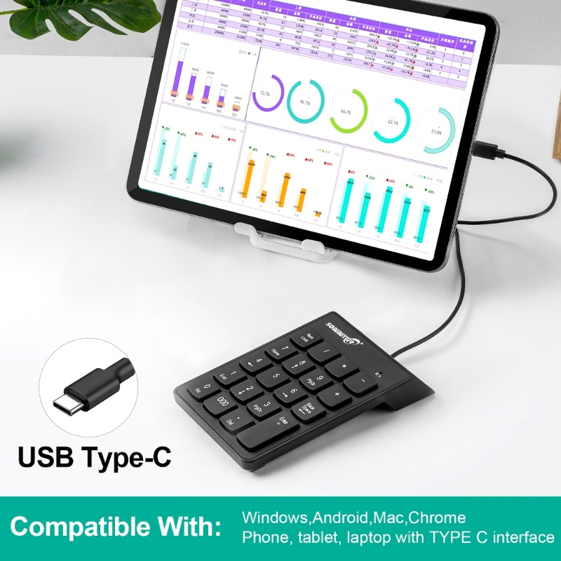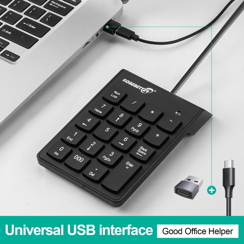 OUT Wire Numeric Keypad 19-Key Corded Type C USB Number Pad External Numpad Portable Mini Numeric Keyboard for Laptop