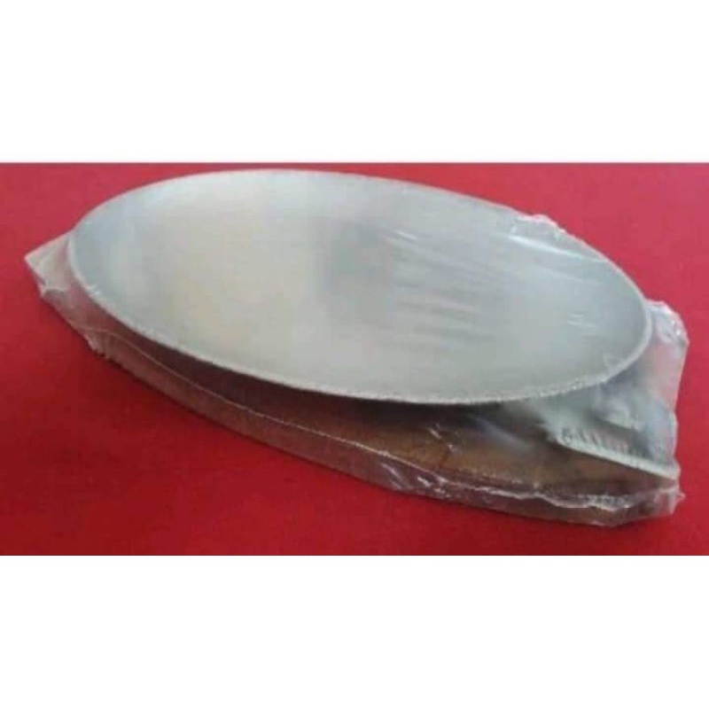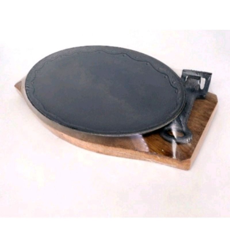 OVAL SIZZLING PLATE, wITH HANDLE AND WOOD
