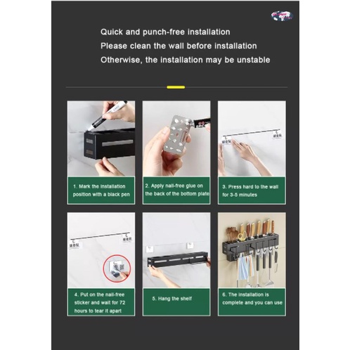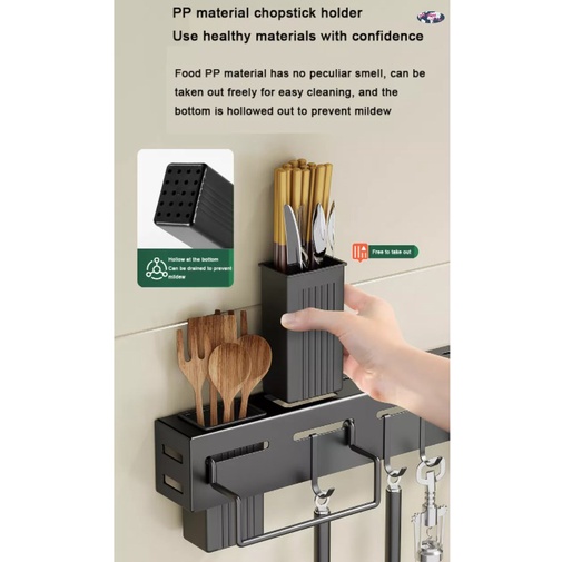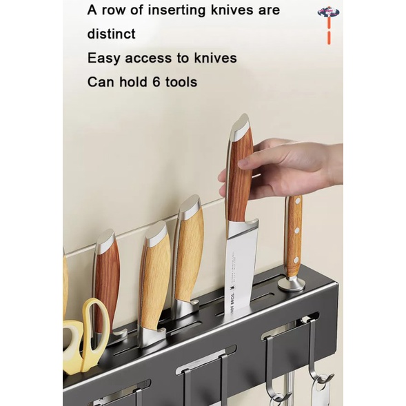OW Stainless Steel Wall Mounted Kitchen Ware Organizer Knife Spoon Rack Holder Towel Hanger