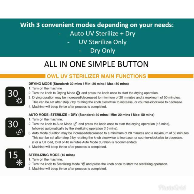 OWL Baby UV Sterilizer and Dryer (16L Capacity fits 12 bottles)