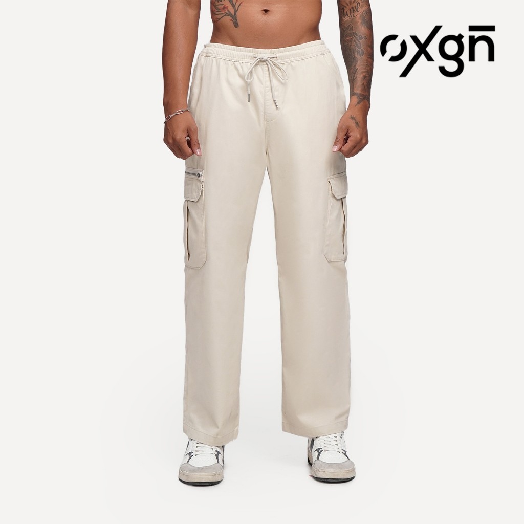 OXGN Cargo Pants For Men (Bone/Dark Gray)