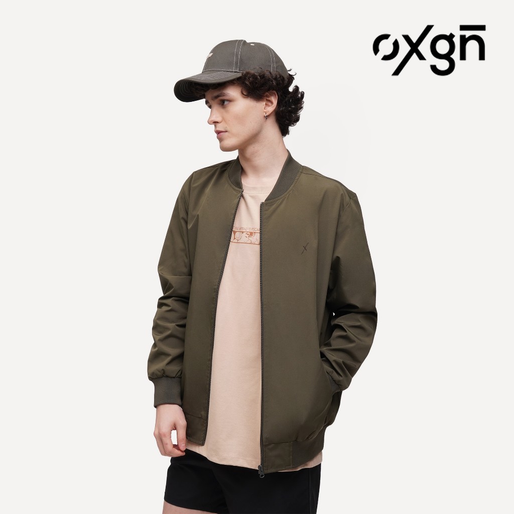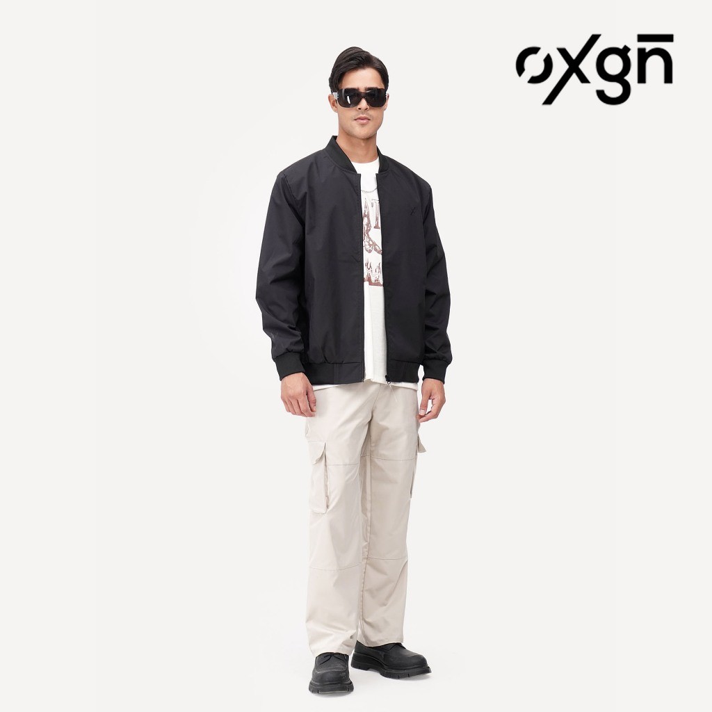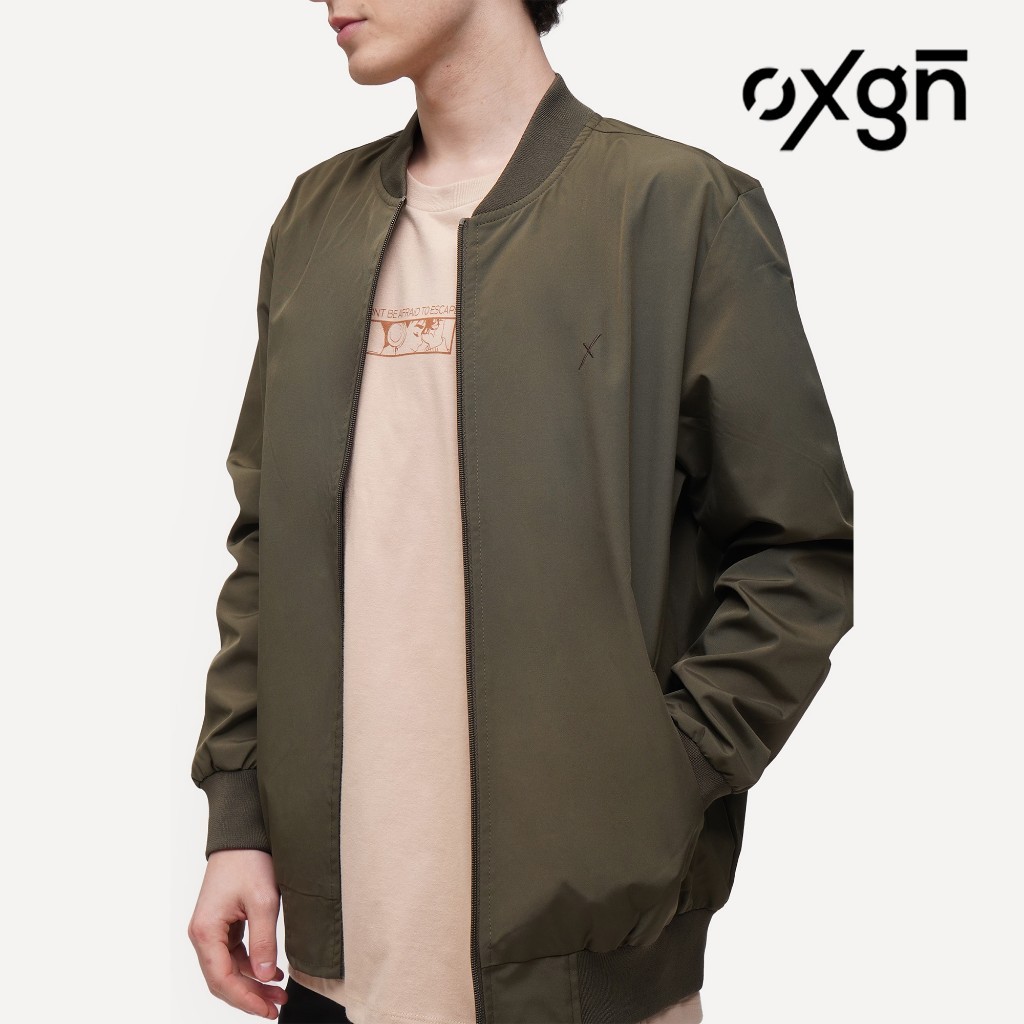 OXGN Nylon Bomber Jacket For Men (Black/Thyme)