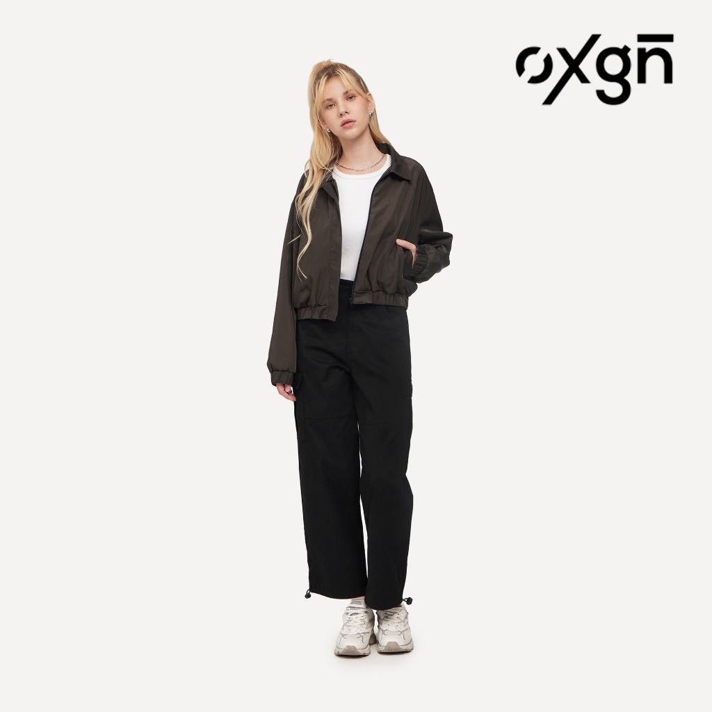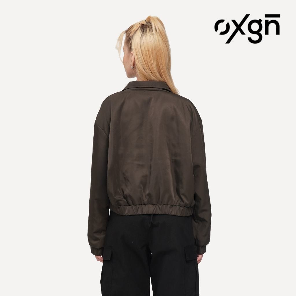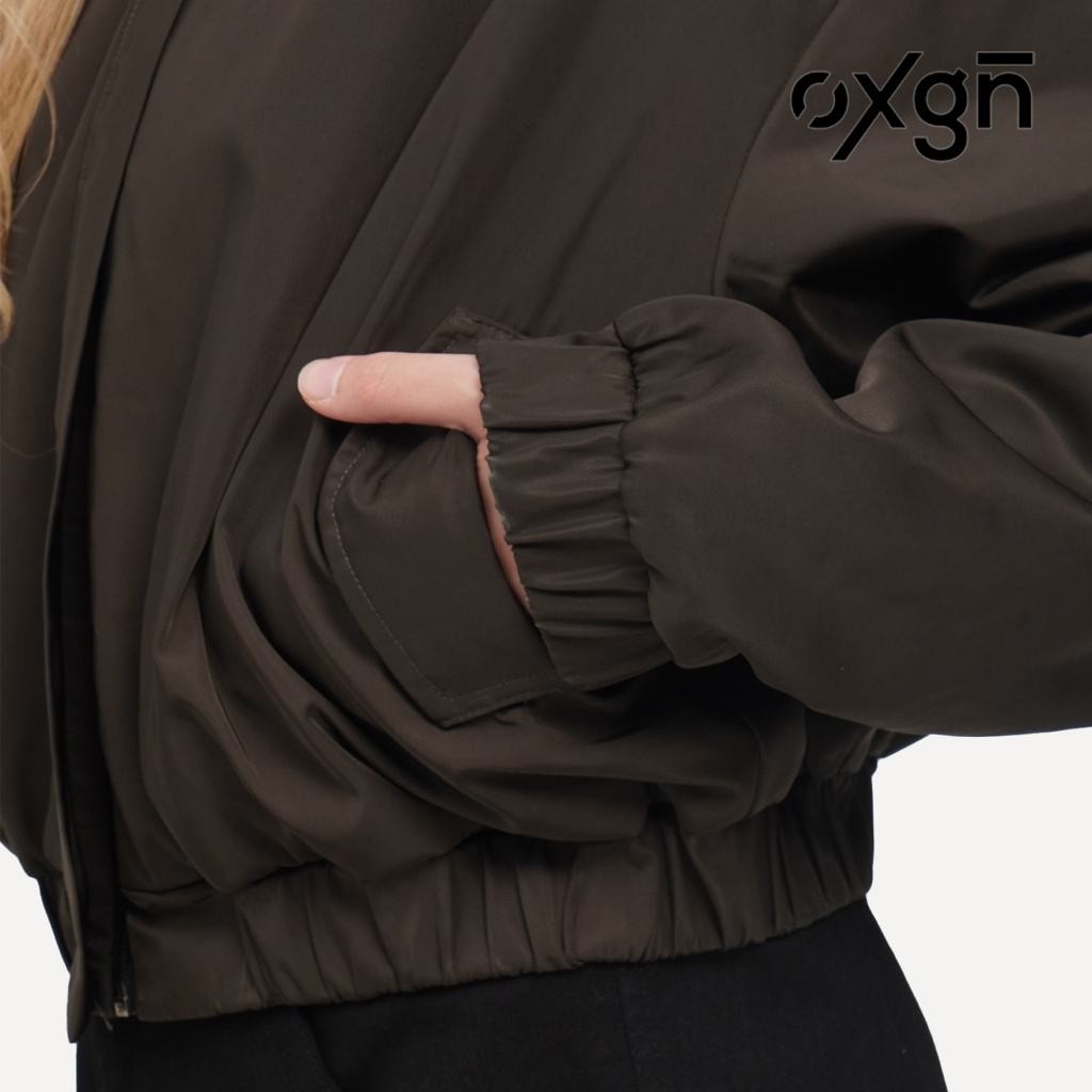 OXGN Patch Pocket Bomber Jacket For Women (Dark Gray)