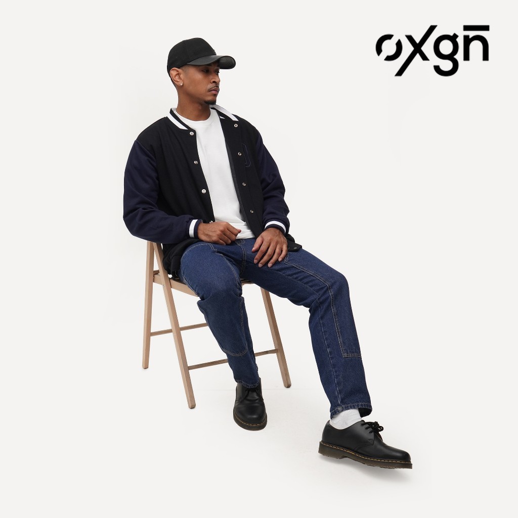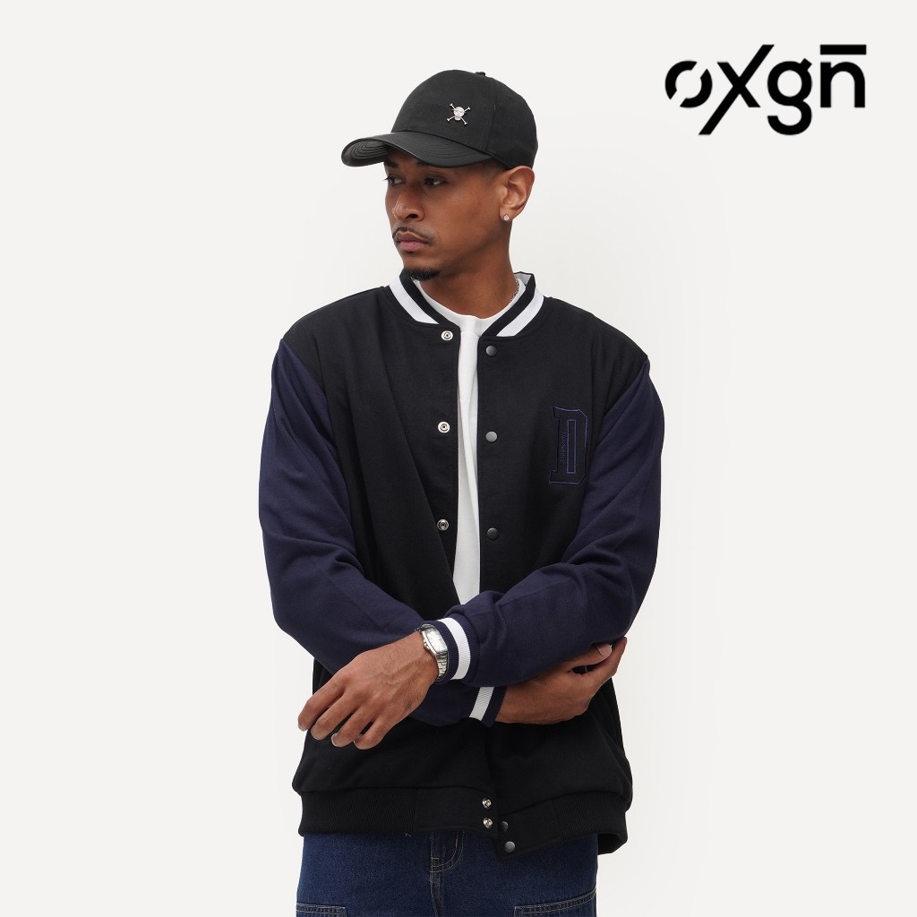 OXGN Varsity Bomber Jacket For Men (Black)